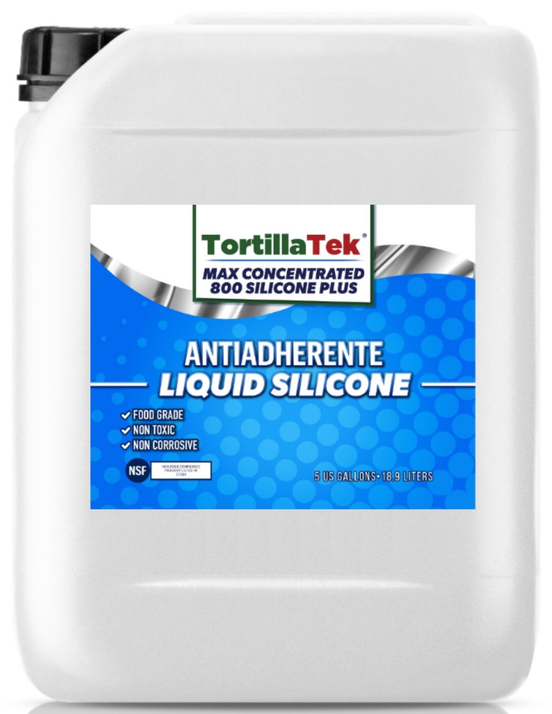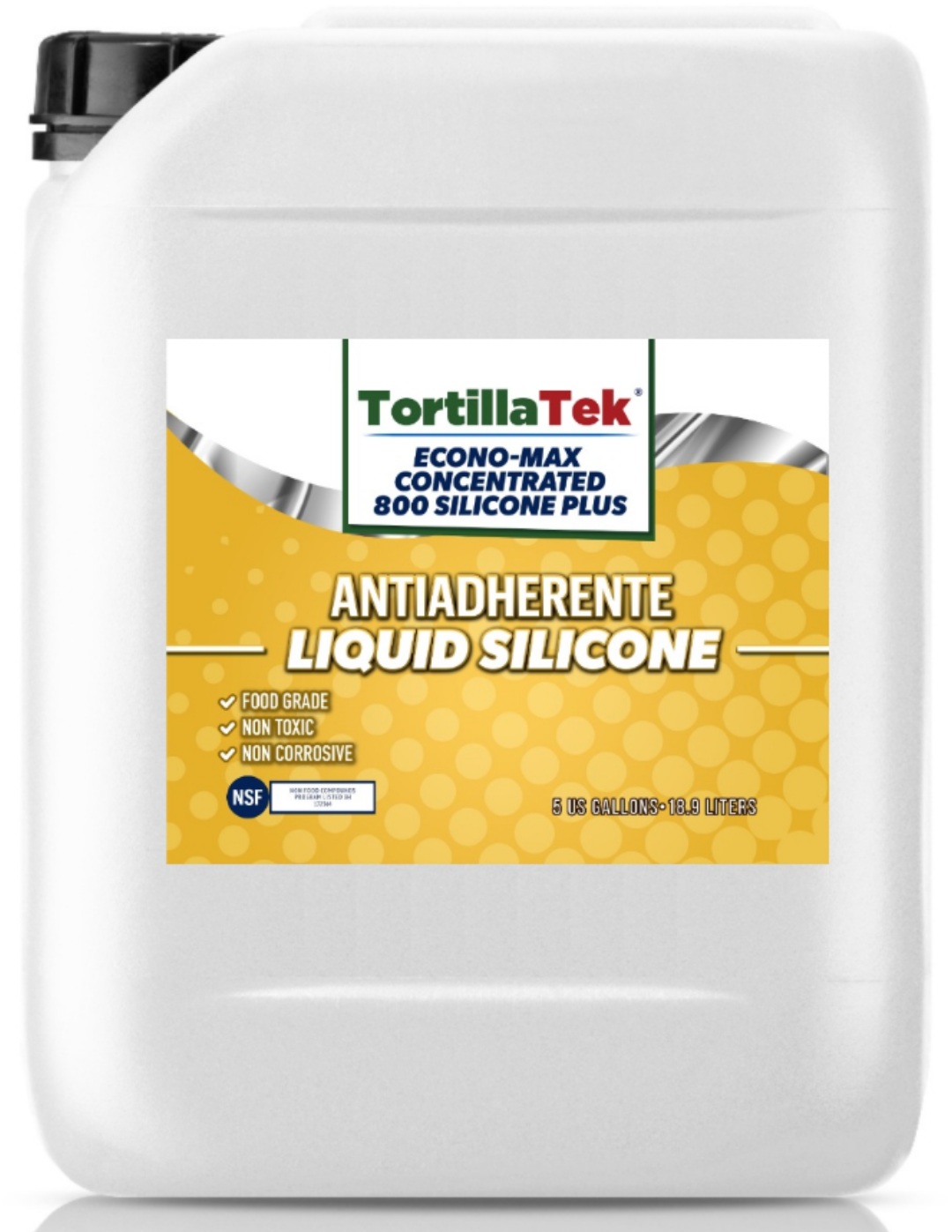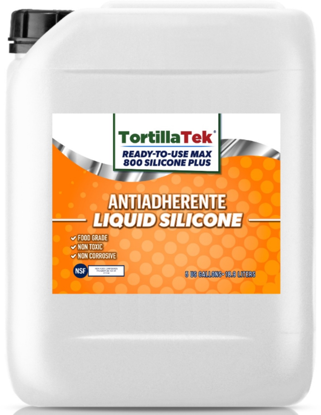 TortillaTek MAX CONCENTRATED 800 SILICONE PLUS. This product is NOT an INGRDIENT or an ADDITIVE. It is a liquid non-stick processing aid product formulated with food grade silicone & natural derived emulsifiers that comply with FDA guidelines for food contact. It’s classified by the NSF as (H3) Developed to meet the needs of the tortilla; wraps & chapatti manufactures eliminate product from sticking to their oven slat-belts (comales) without effecting the taste, color, aroma and quality of their products. ANTI-ADHERENTE MAX, ECONO-MAX concentrado y Listo-Para-Usar