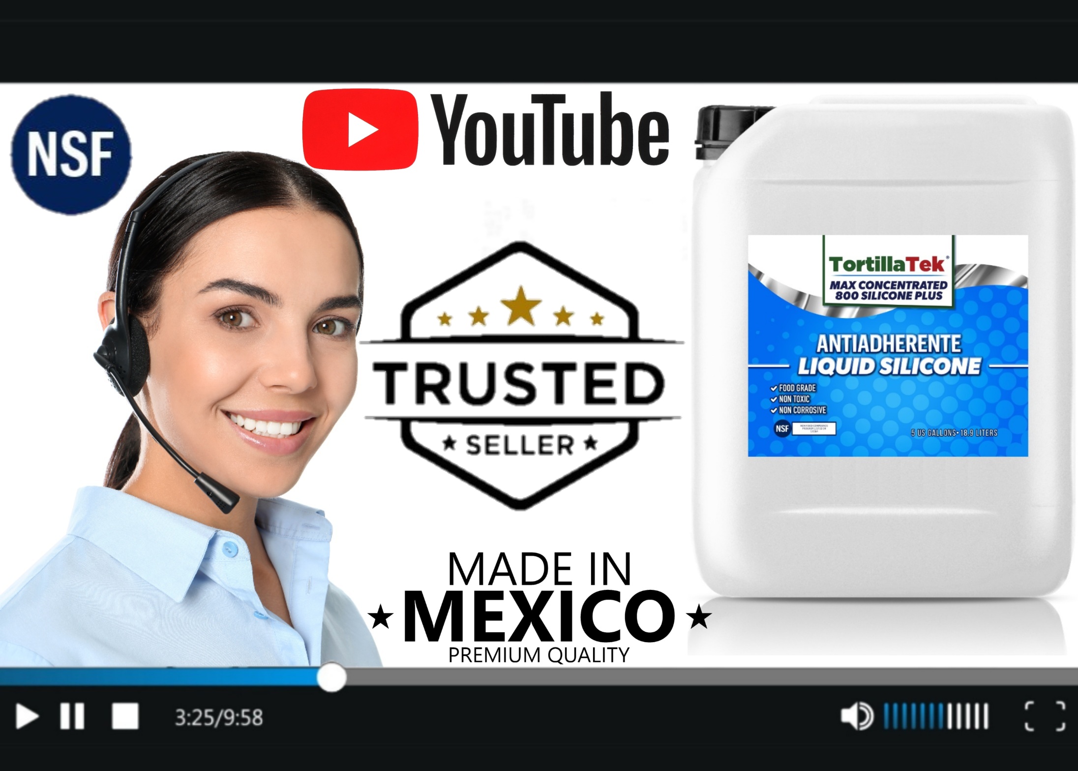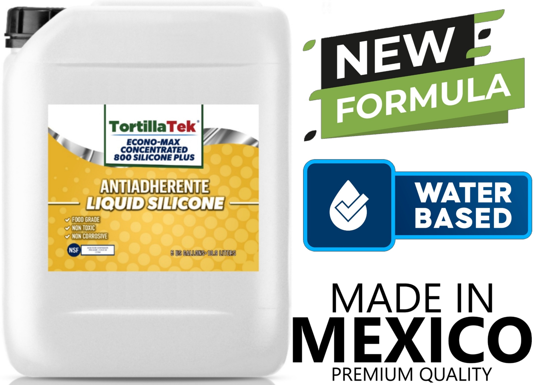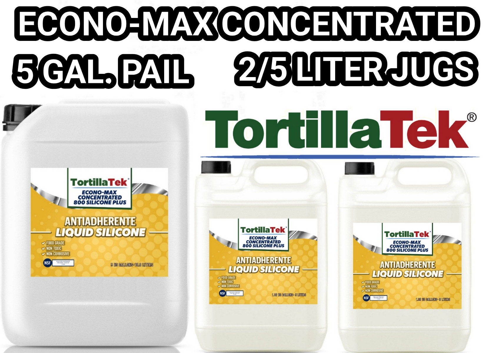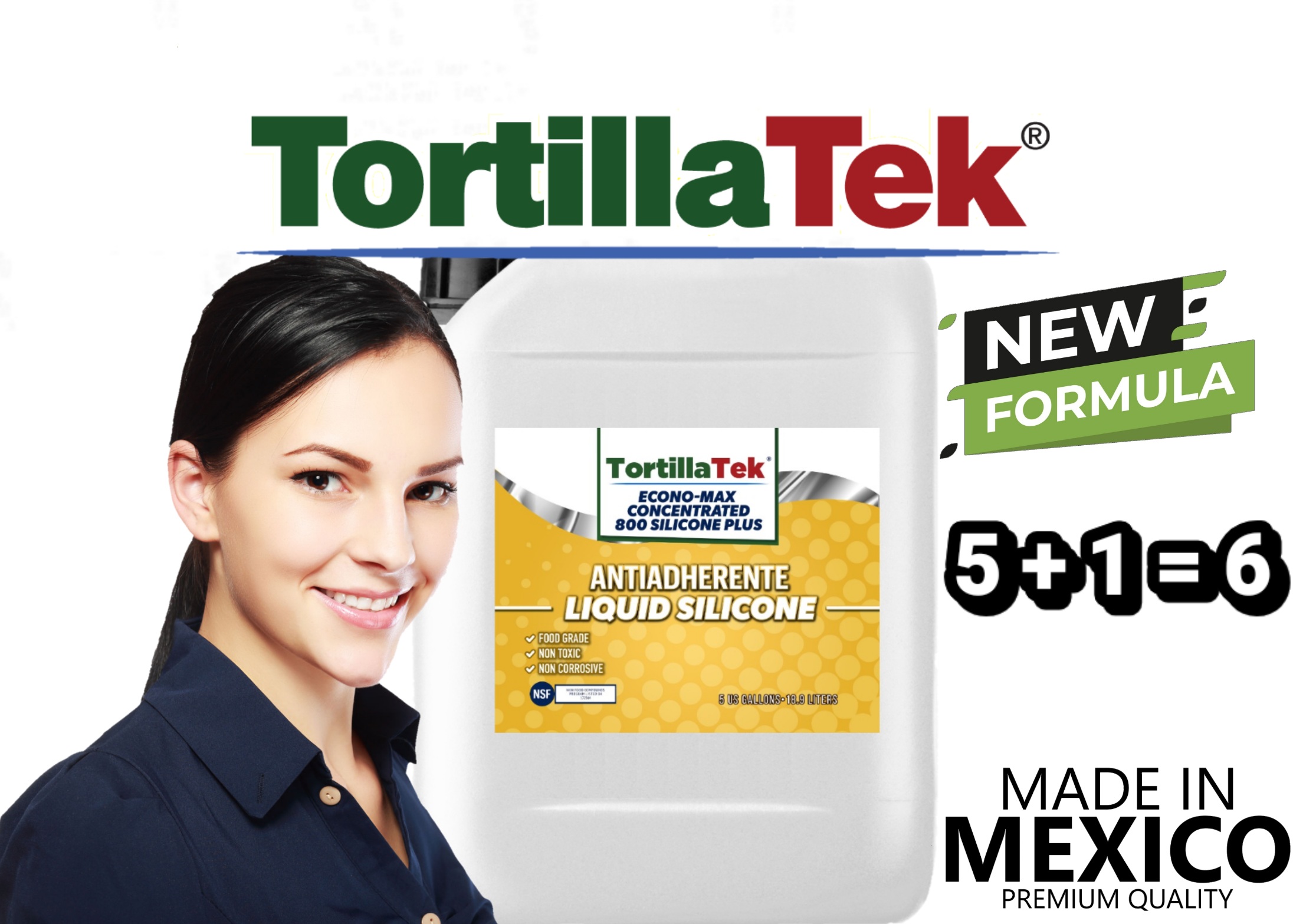 TortillaTek MAX CONCENTRATED 800 SILICONE PLUS. This product is NOT an INGRDIENT or an ADDITIVE. It is a liquid non-stick processing aid product formulated with food grade silicone & natural derived emulsifiers that comply with FDA guidelines for food contact. It’s classified by the NSF as (H3) Developed to meet the needs of the tortilla; wraps & chapatti manufactures eliminate product from sticking to their oven slat-belts (comales) without effecting the taste, color, aroma and quality of their products. ANTI-ADHERENTE MAX, ECONO-MAX concentrado y Listo-Para-Usar