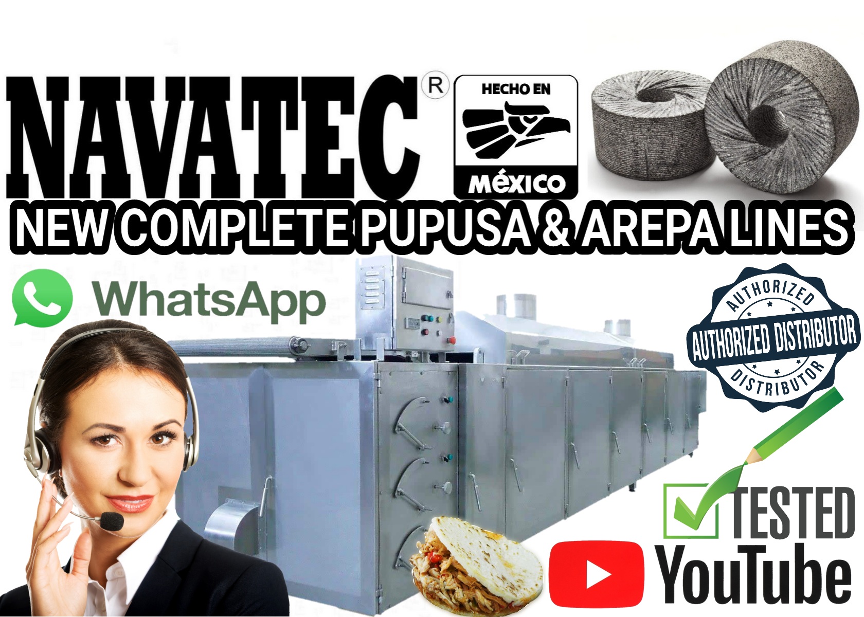 Navatec heavy duty complete pupusa & arepa manufacturing lines or ovens made with 304 stainless steel