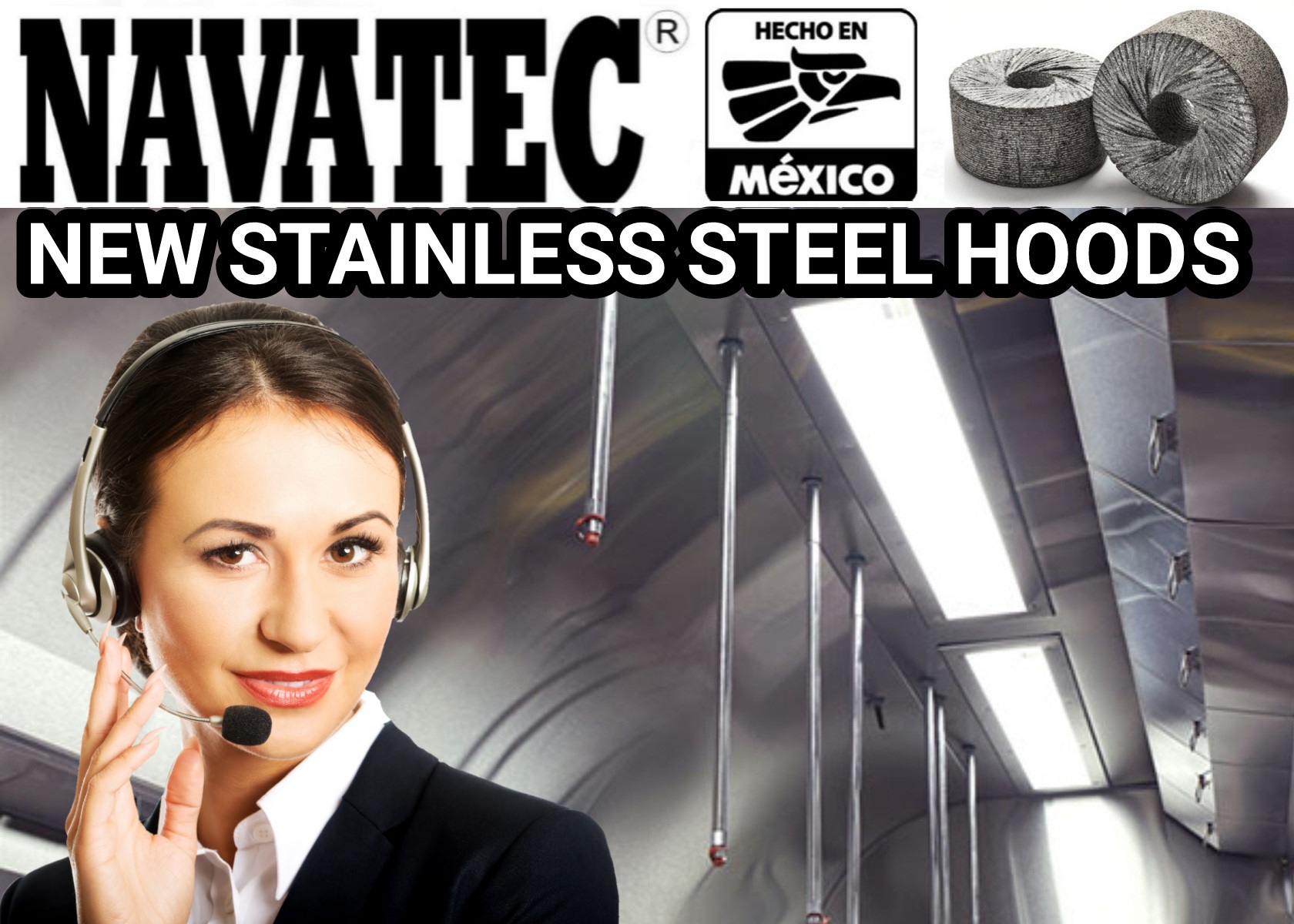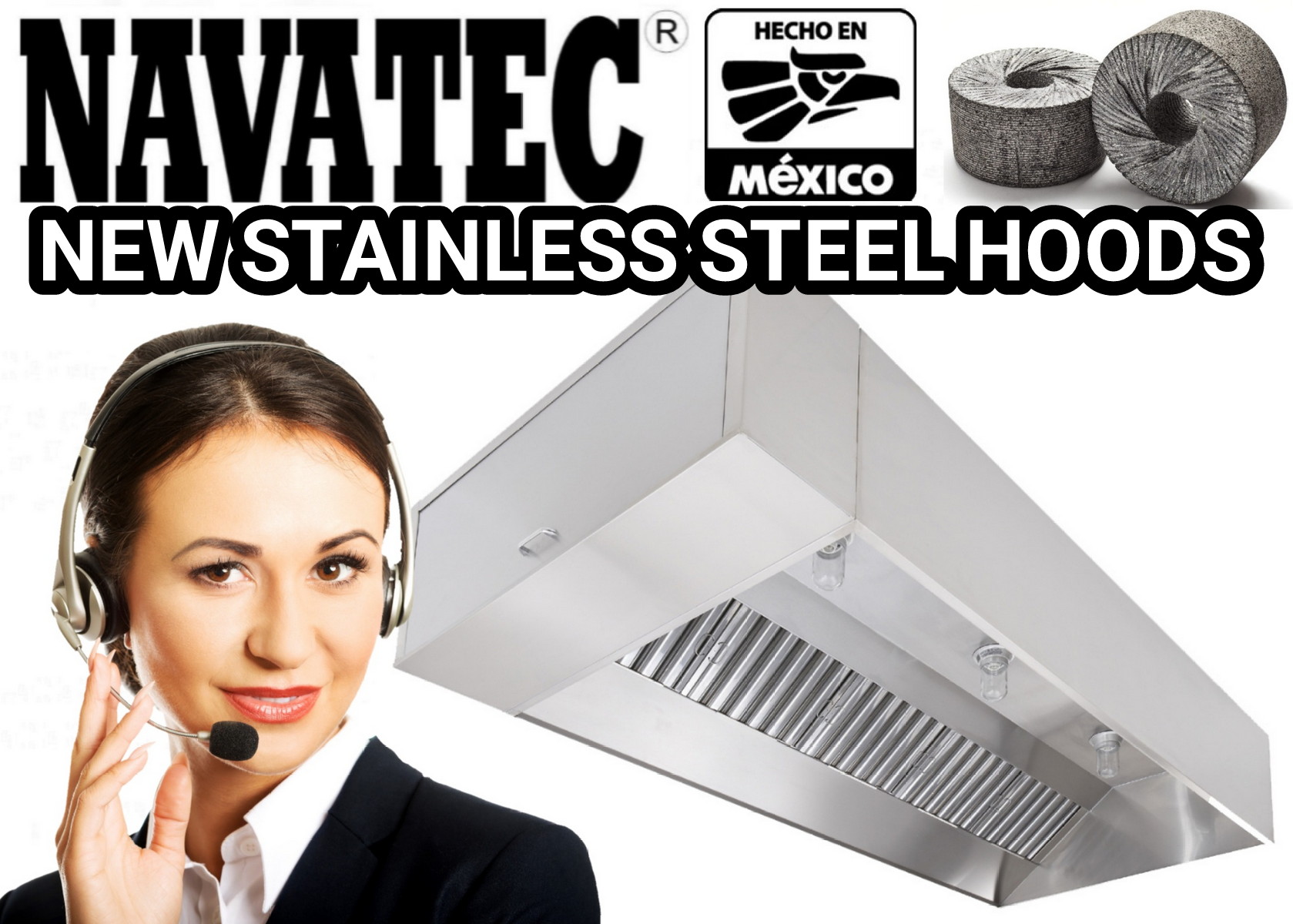 Navatec stainless-steel custom-made grease hoods with or without mist made any size needed