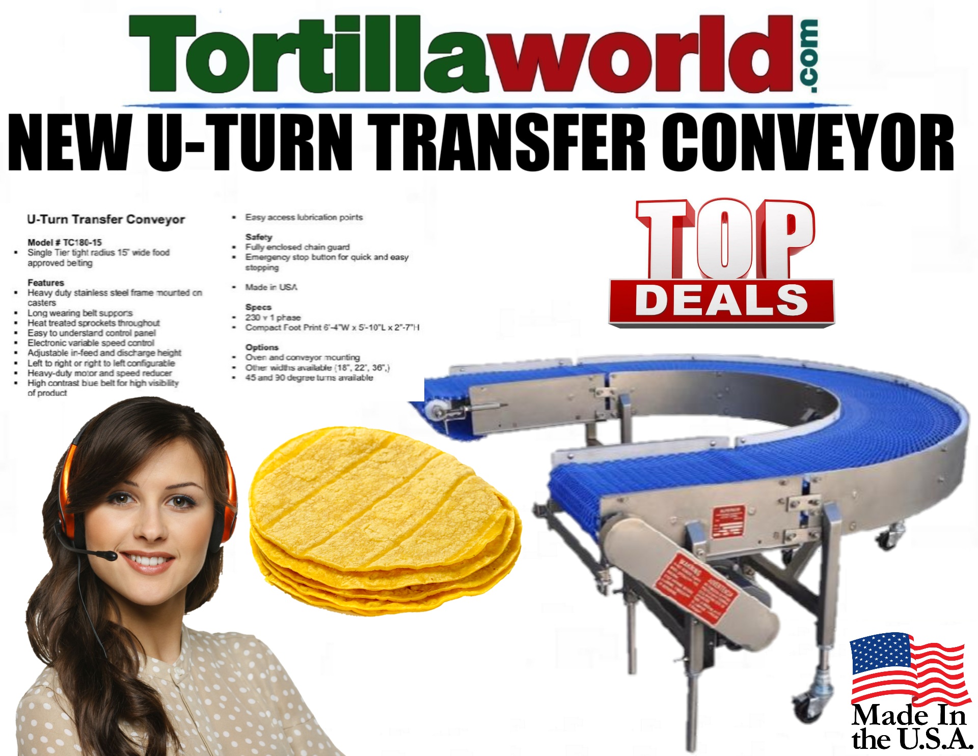 The post New tortilla U-turn transfer conveyor for sale first appeared on Tortillaworld.com.