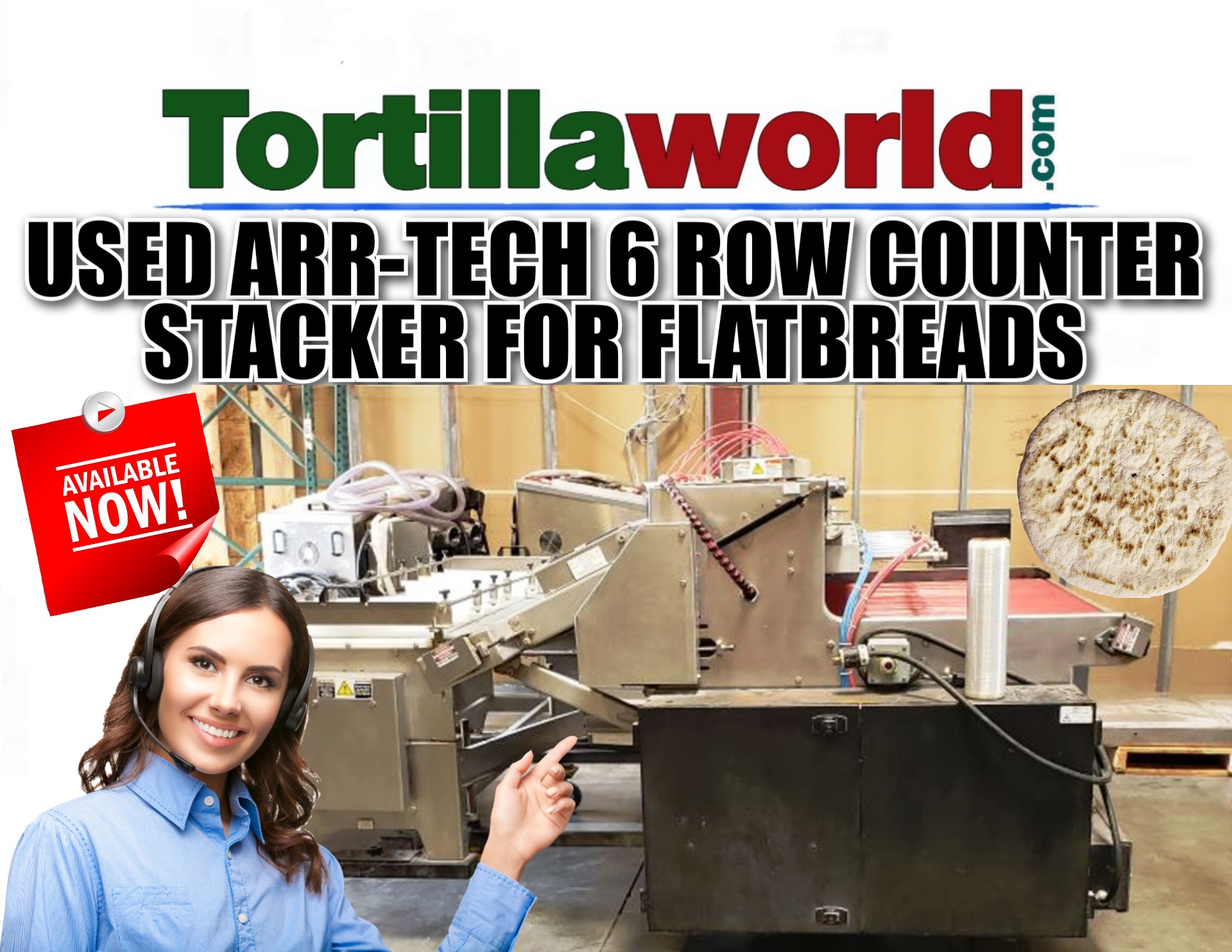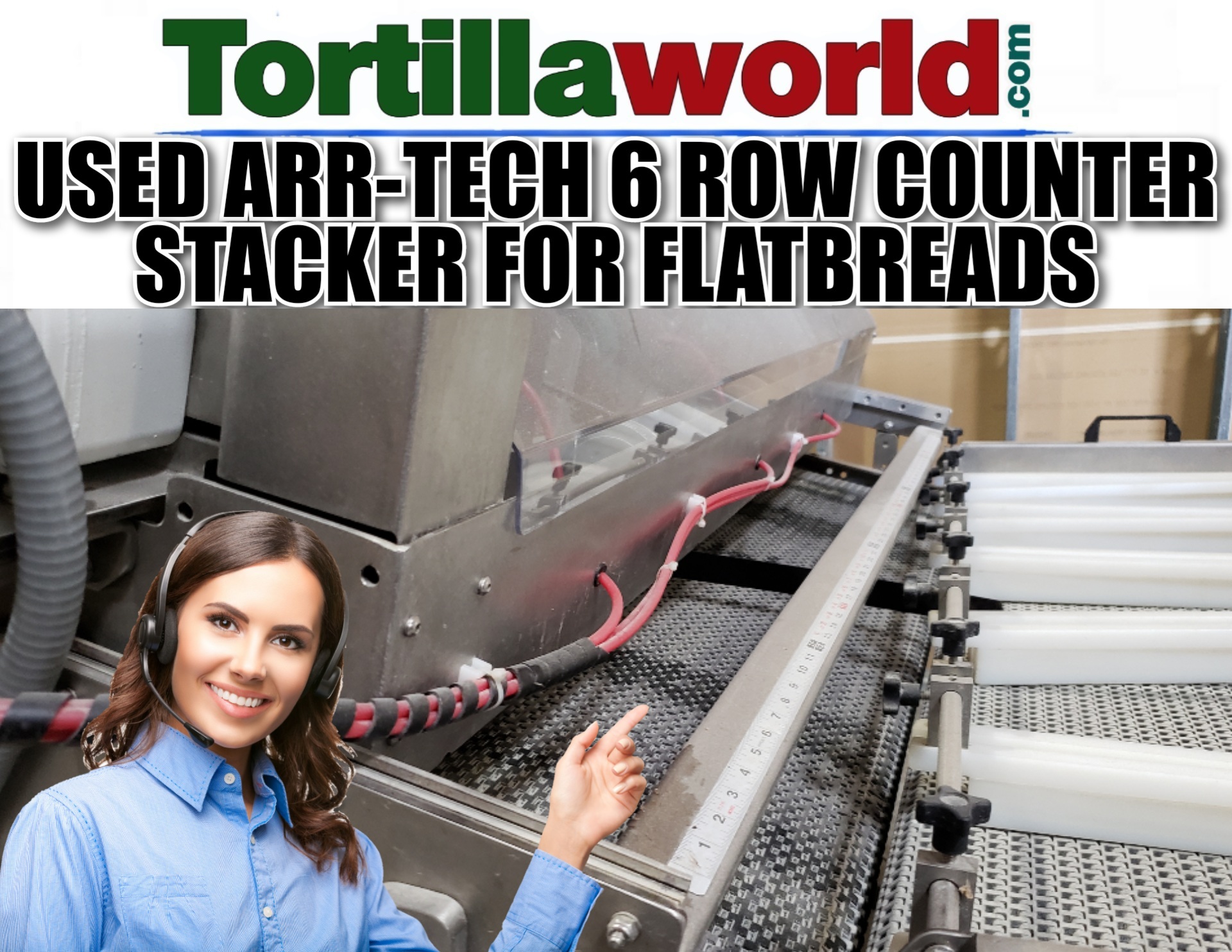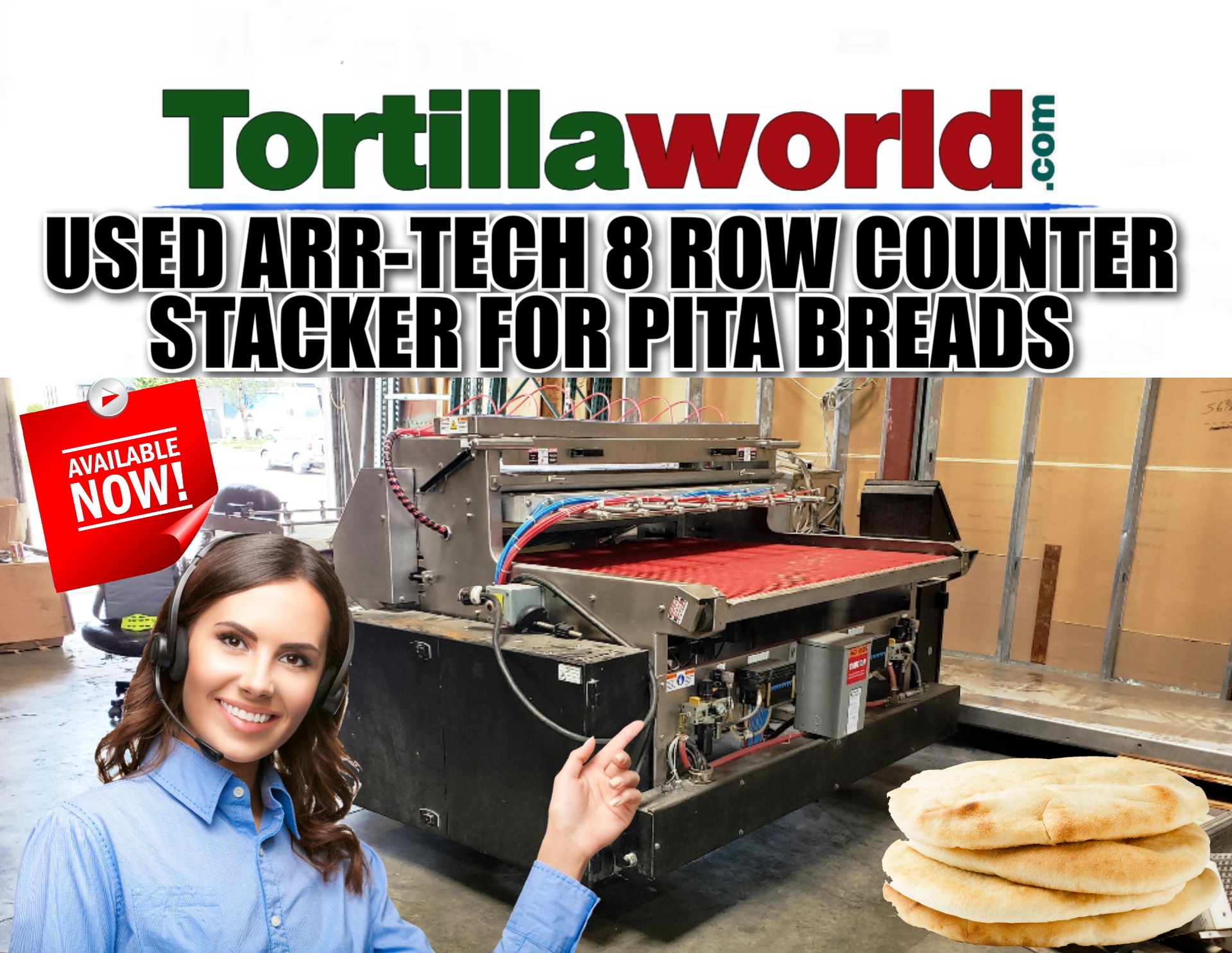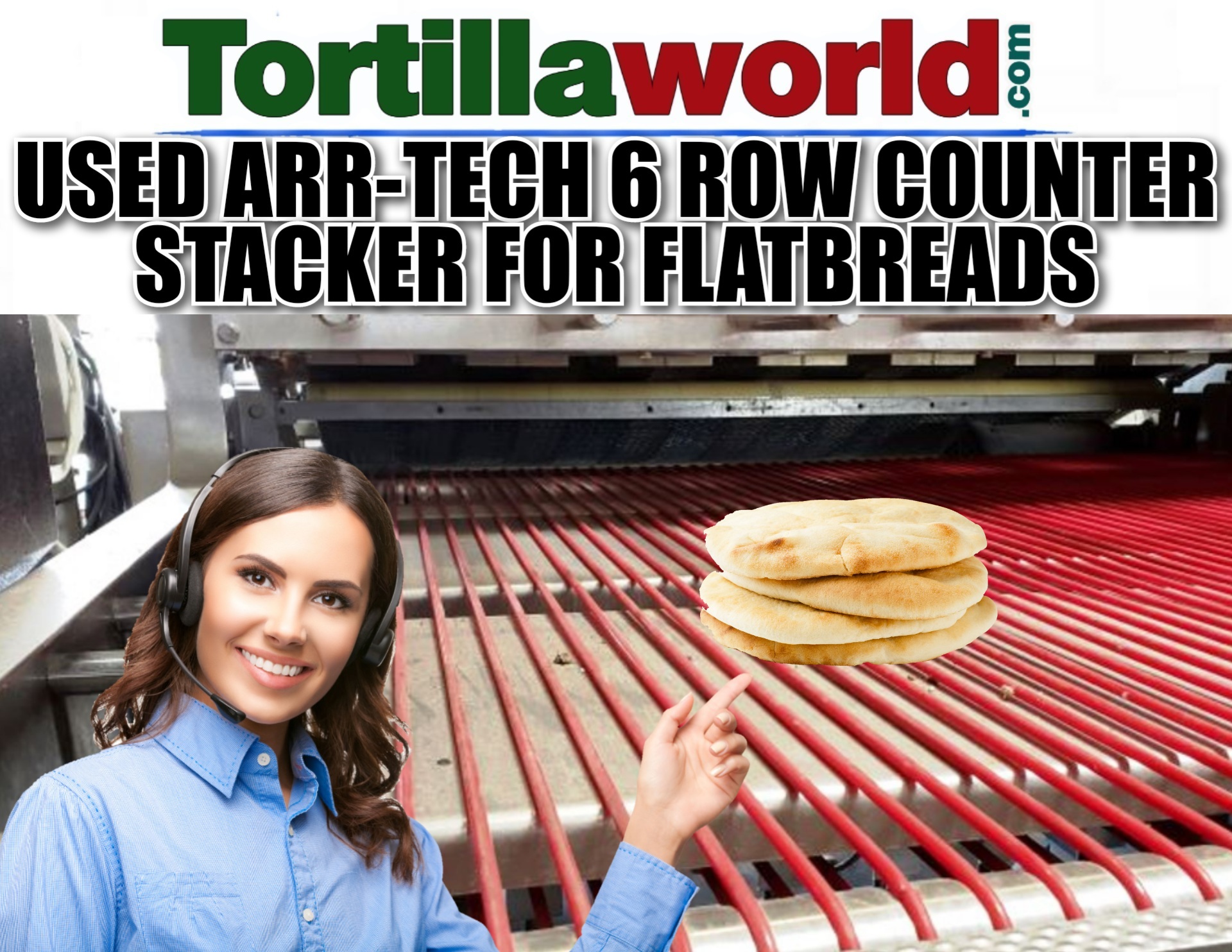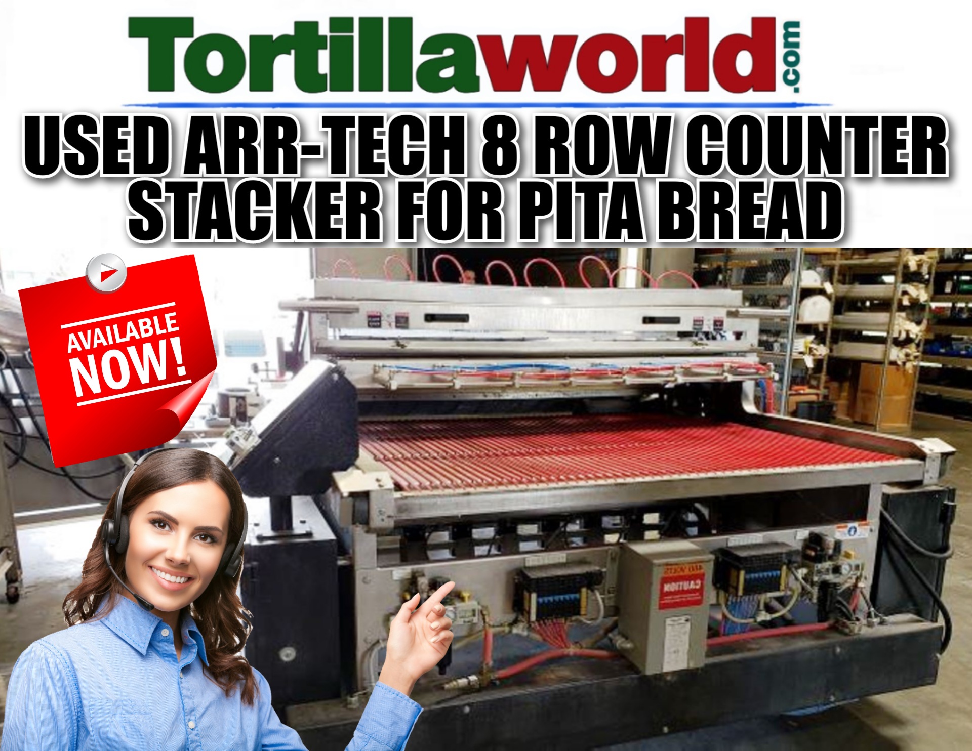 The post Used Arr-Tech 8 row counter stacker for pita/flat bread for sale first appeared on Tortillaworld.com.