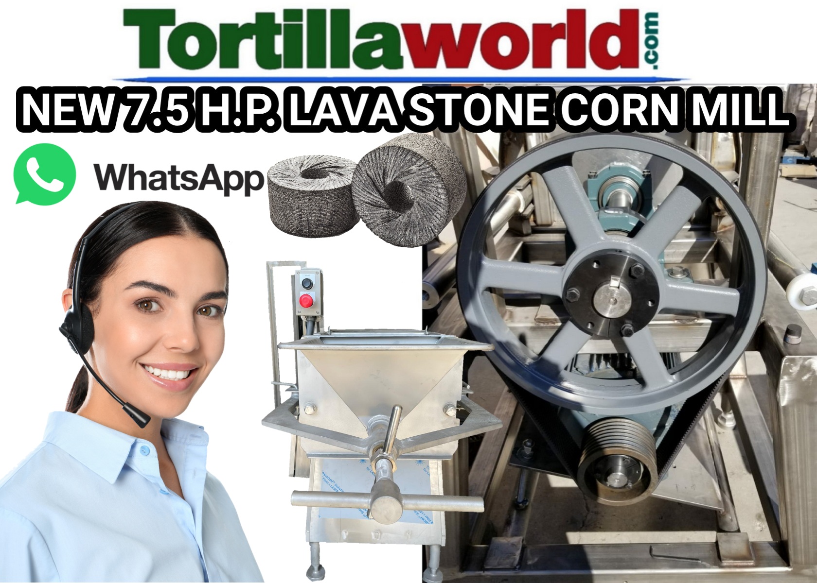 The post New 7½ HP lava stone corn mill for sale first appeared on Tortillaworld.com.