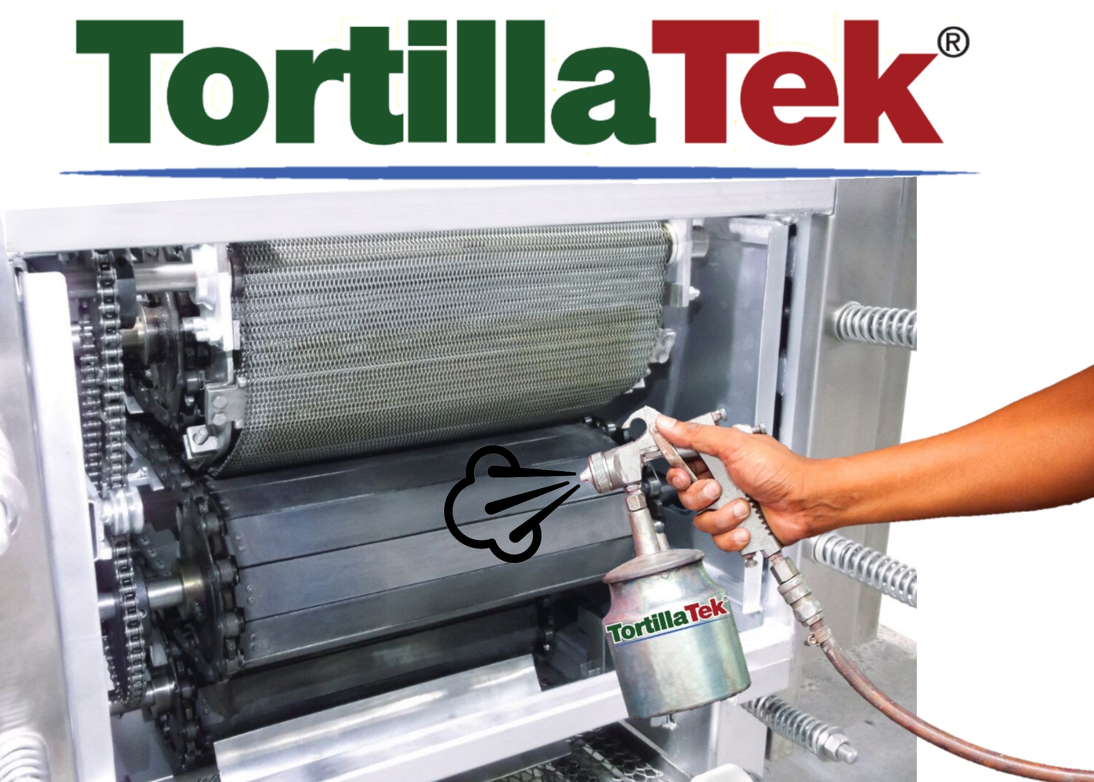 TortillaTek Ready-To-Use graphite-based chain lubricant is a non-toxic, non-corrosive, heat resistance, non-irritating, odorless and easy to apply water-based graphite chain lubricant developed specifically for the tortilla and bakery industry manufacturers to use as a preventive maintenance lubrication, eliminating squeaky and noisy oven slat belt chains by resisting friction, without producing smoke when applied and improving operating efficiency