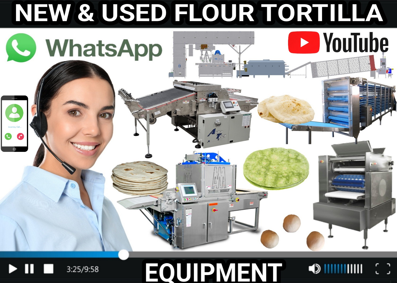 Get into the tortilla business, start small. This line has less than a month’s use. Pre-owned Superior flour/corn tortilla line. corn/flour tortilla oven, cooling conveyor, masa feeder, water meter, mixer, captive aire type 1 condensate hood. conveyor fryer, conveyor salter, U-turn conveyor, exhaust fan for hood. fryer capable of 100 lb. per hour capacity. corn tortillas: 200 to 350 dozen per hour. flour tortillas: rated 90 dozen per hour