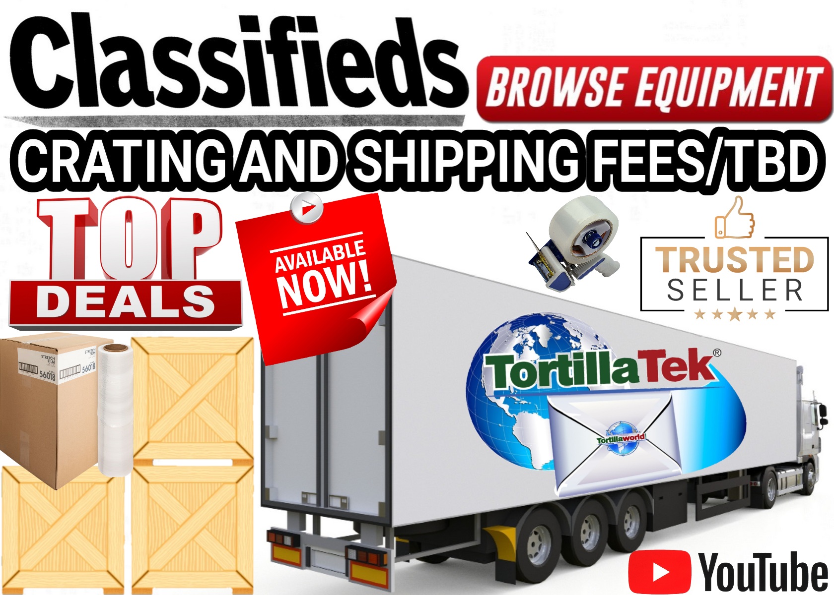 In order for our customers to receive equipment or item/items undamaged purchased & shipped thru Tortillaworld crating will be used when necessary and billed with the freight to customers. Tortillaworld assumes No responsibility for damages while in transit. Please inspect equipment for damage upon arrival before unloading, take photos & make notations on the (BOL) before the driver leaves.