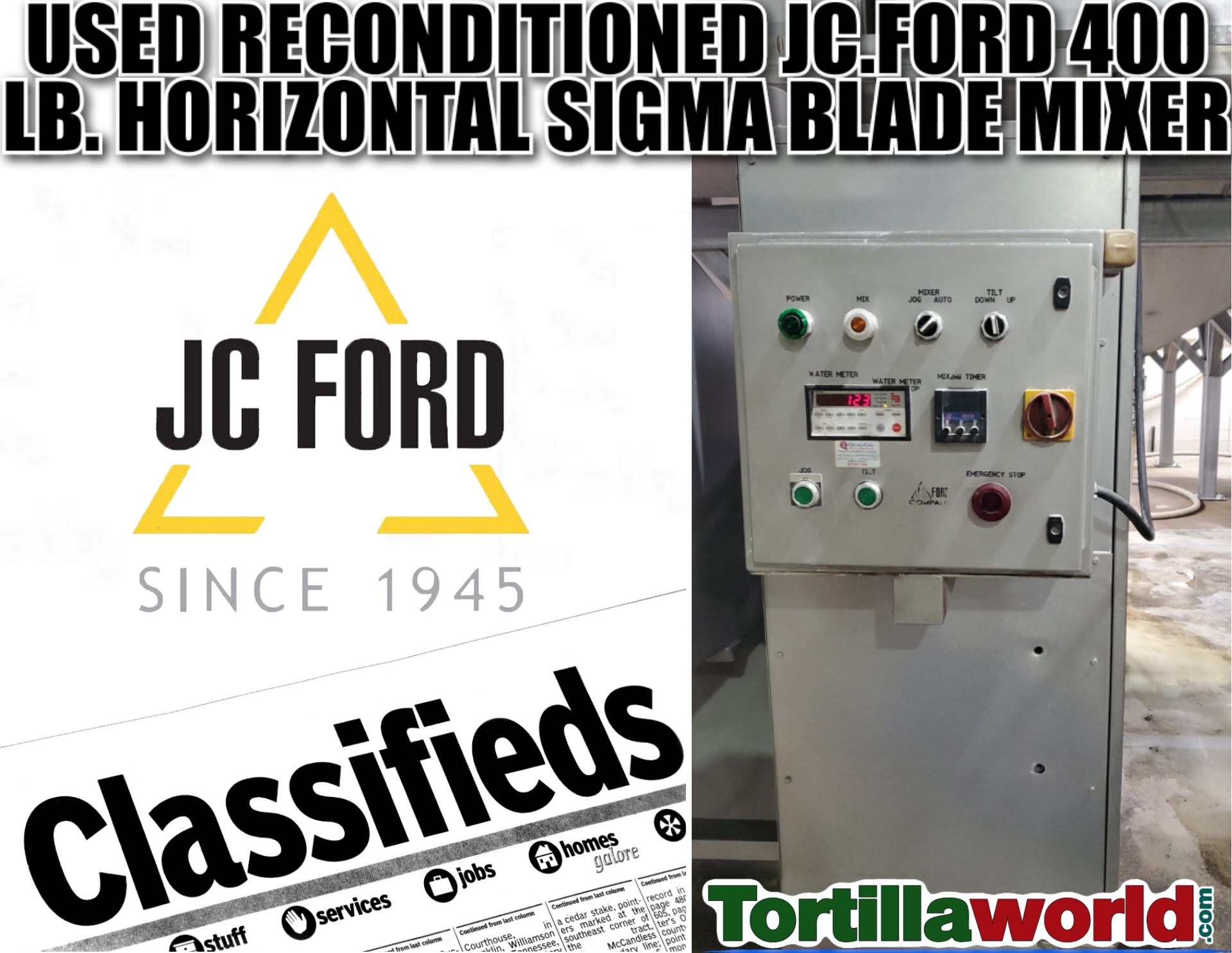 The post Used reconditioned JC. Ford 400 lb. horizontal sigma mixer for sale first appeared on Tortillaworld.com.