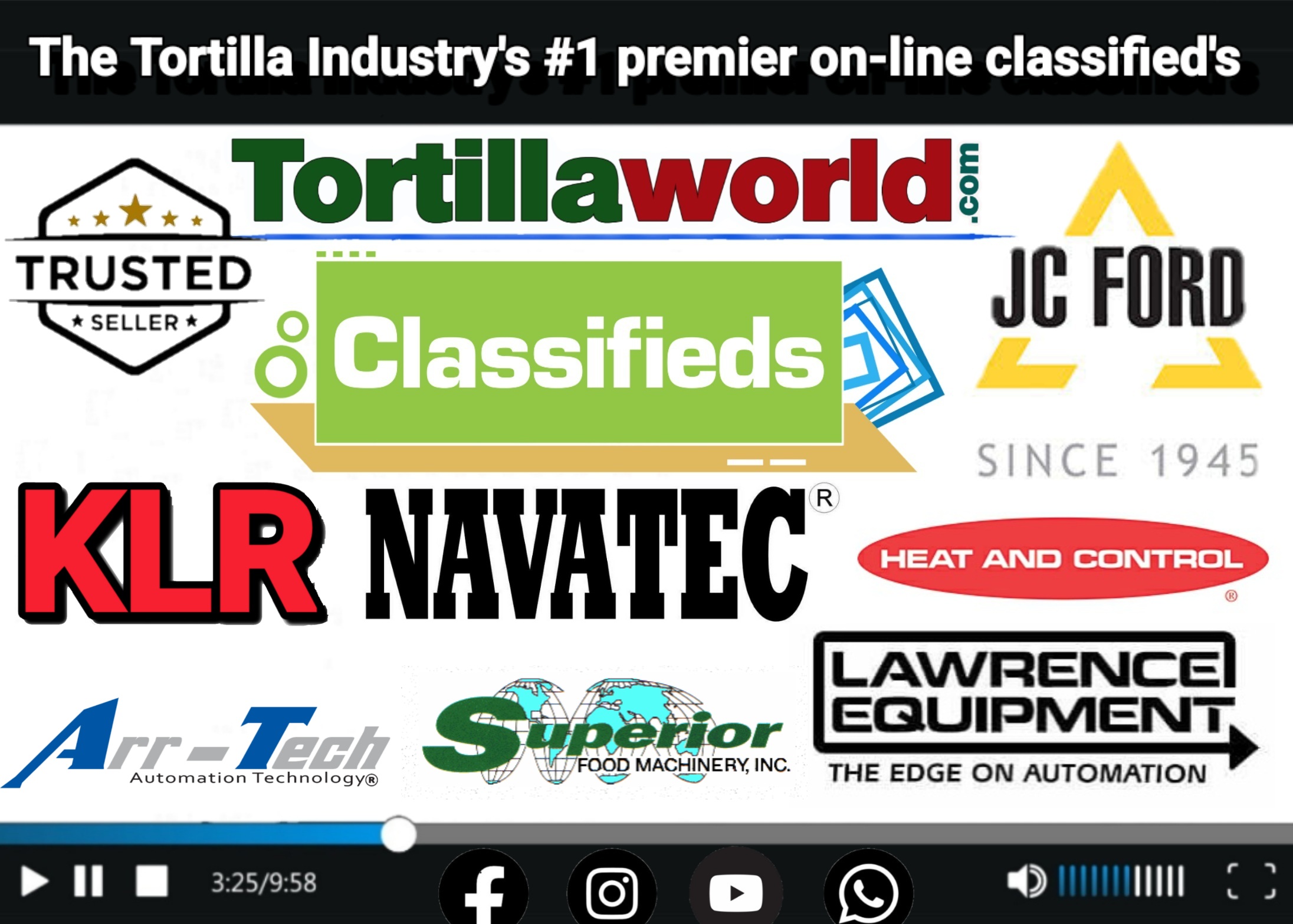 Follow us on all of our social media channels to receive our Tortillaworld exclusive at random flash sales on new & used tortilla & packaging equipment, replacement parts, Ingredients, lubricants and more