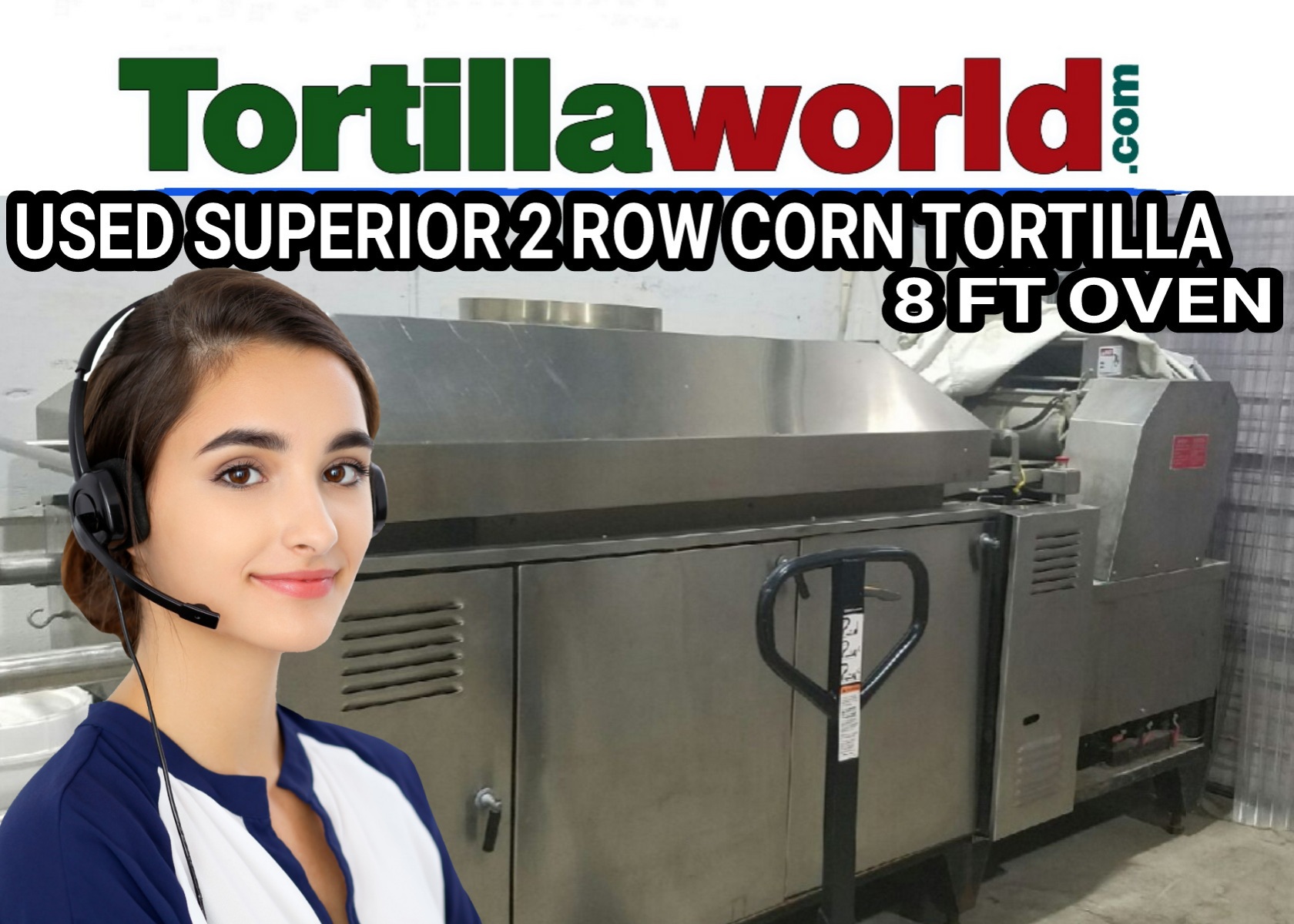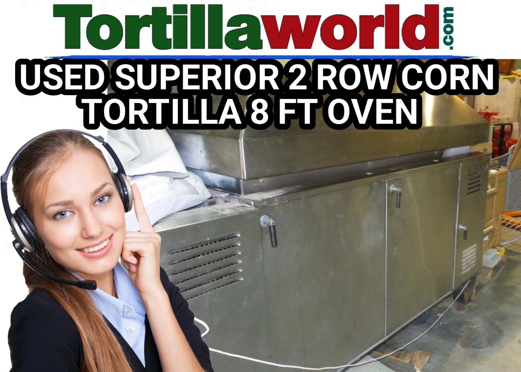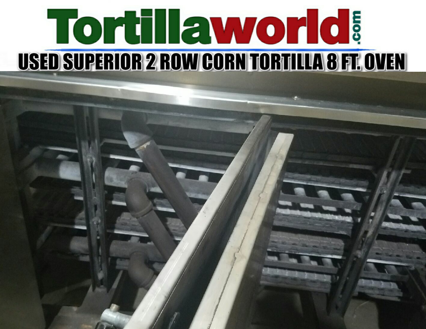 Used Superior 2 row corn tortilla 8 ft. oven only. Makes up to 350 dz. of soft table corn tortilla per hour. Good condition. It was used for 1 year in a super market until they purchased a bigger oven