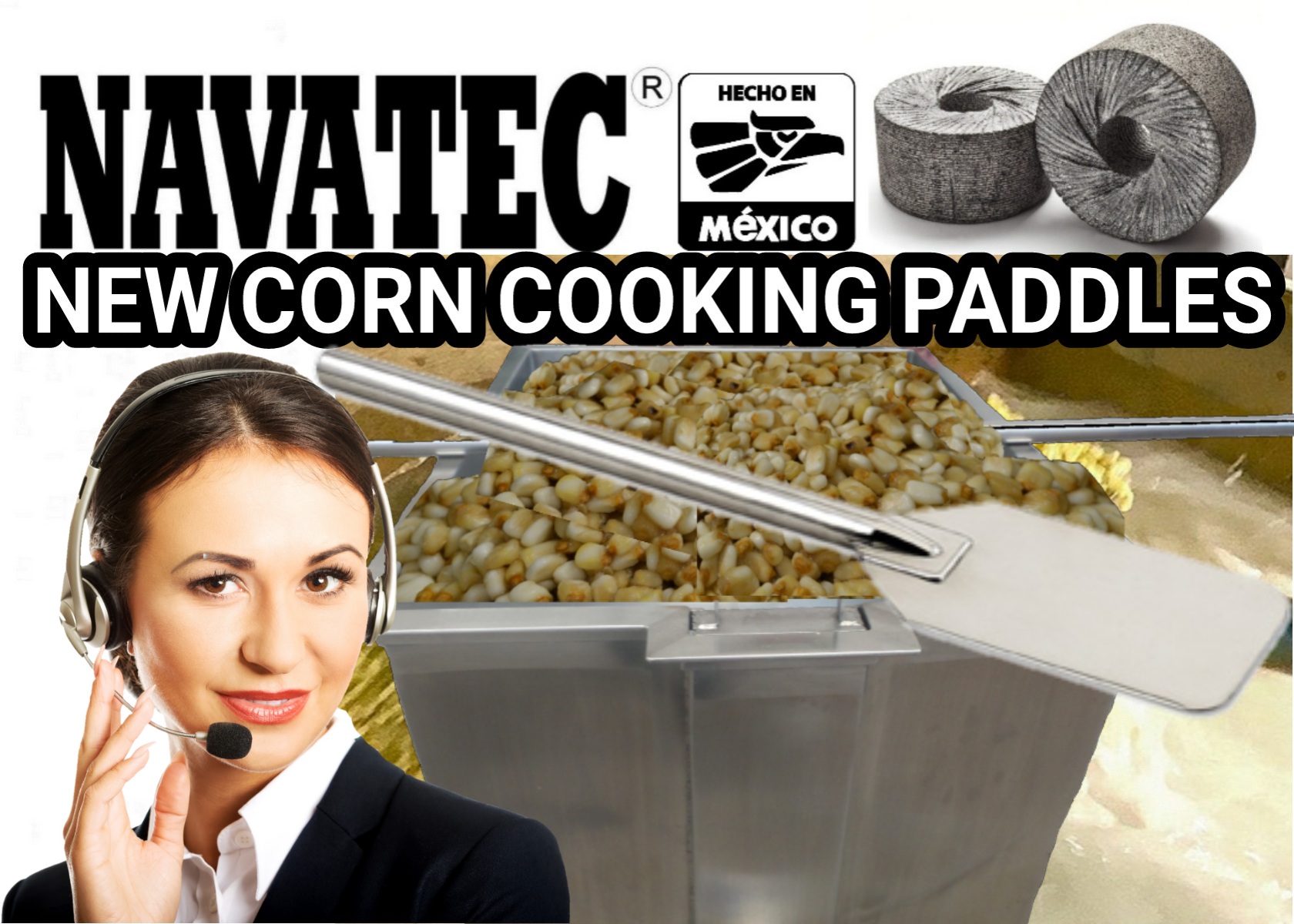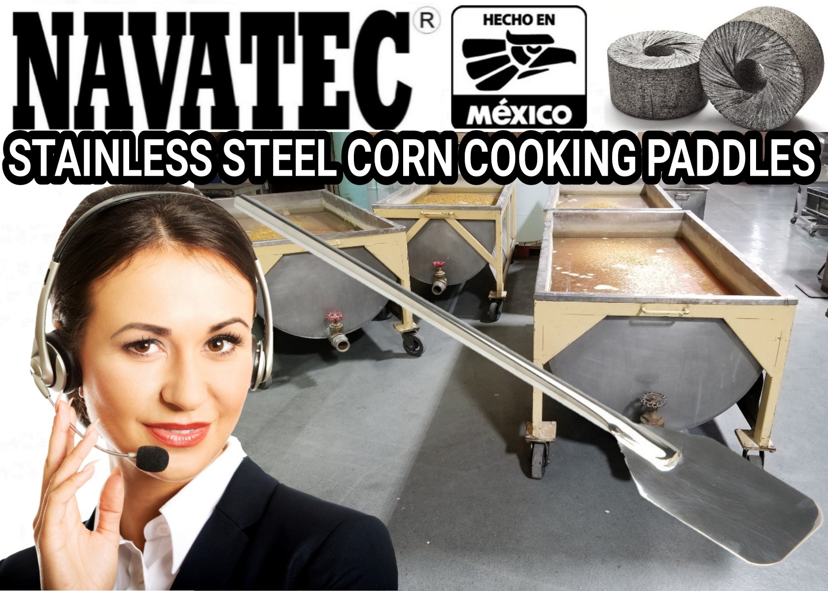 Navatec® stainless steel and/or Hybrid corn cooking paddle for steering your Nixtamal/corn while cooking in the traditional manual tubs. Simply & easy to use, helps you stir for a good even consistent cook every time