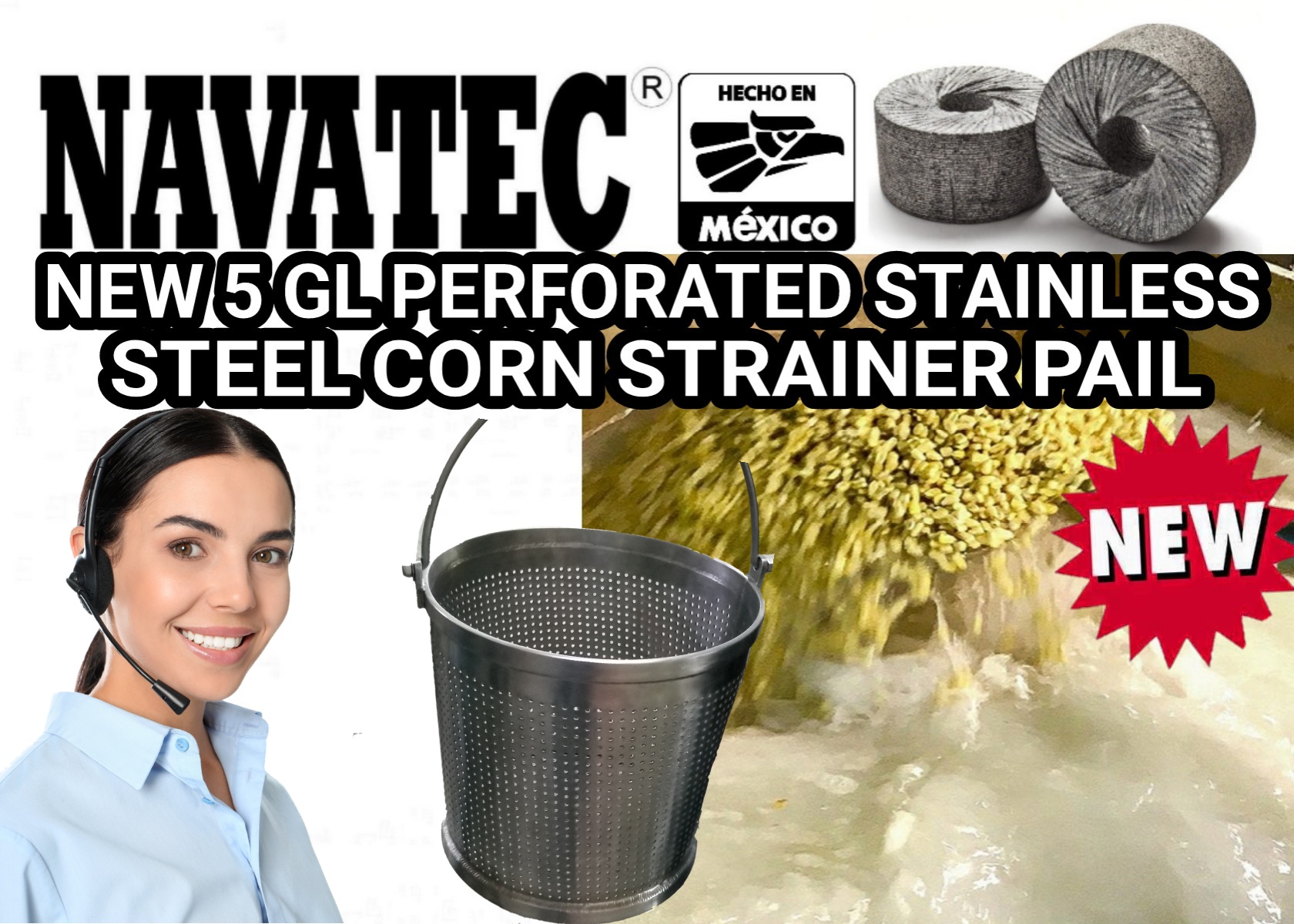 New 5 gallon perforated stainless steel corn strainer pail allows you to quickly dry the Nixtamalized corn when making course masa for tamales. This strainer pail is commonly used in the tortilla Industry because it saves time drying Nixtamalized corn which saves on labor