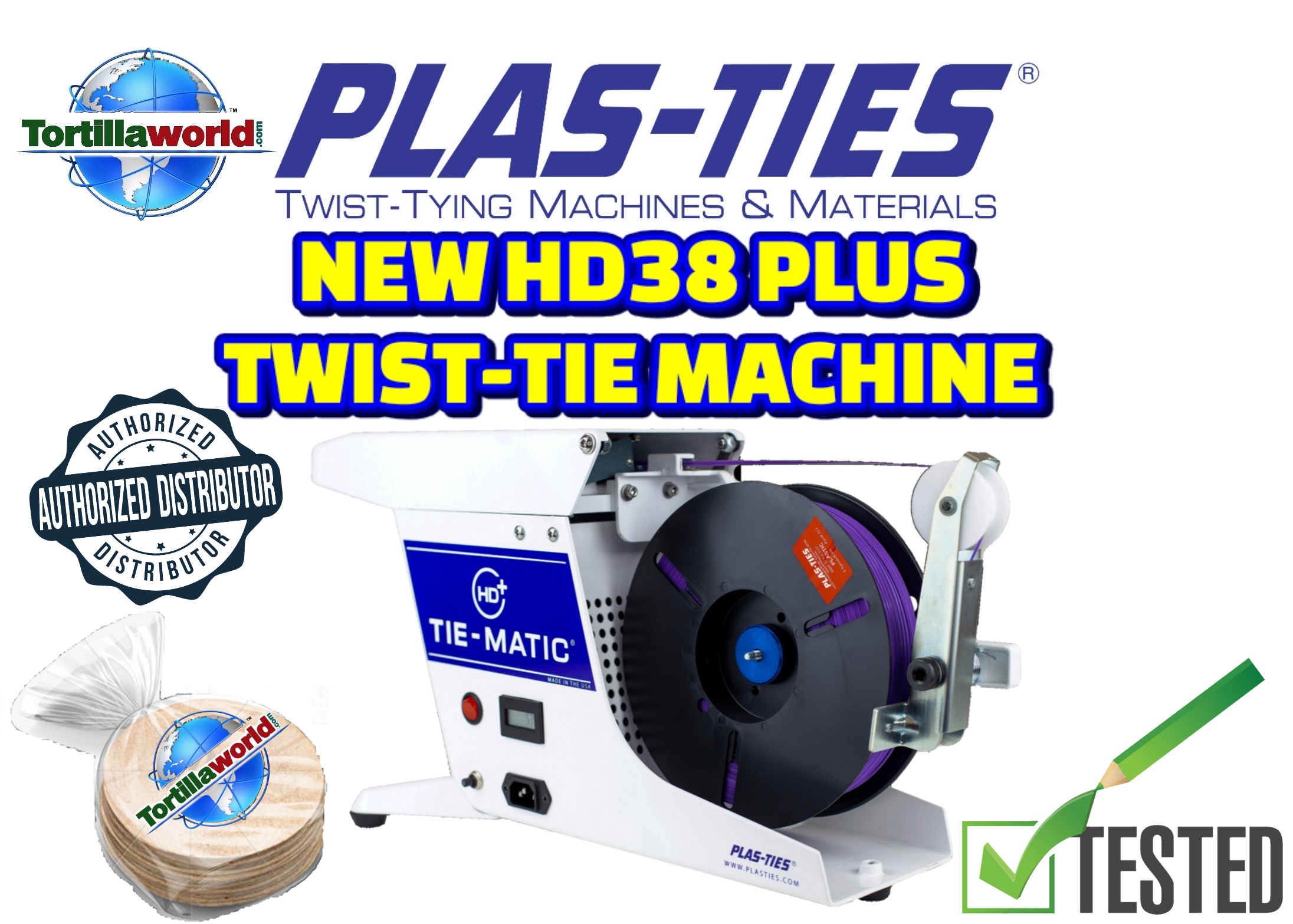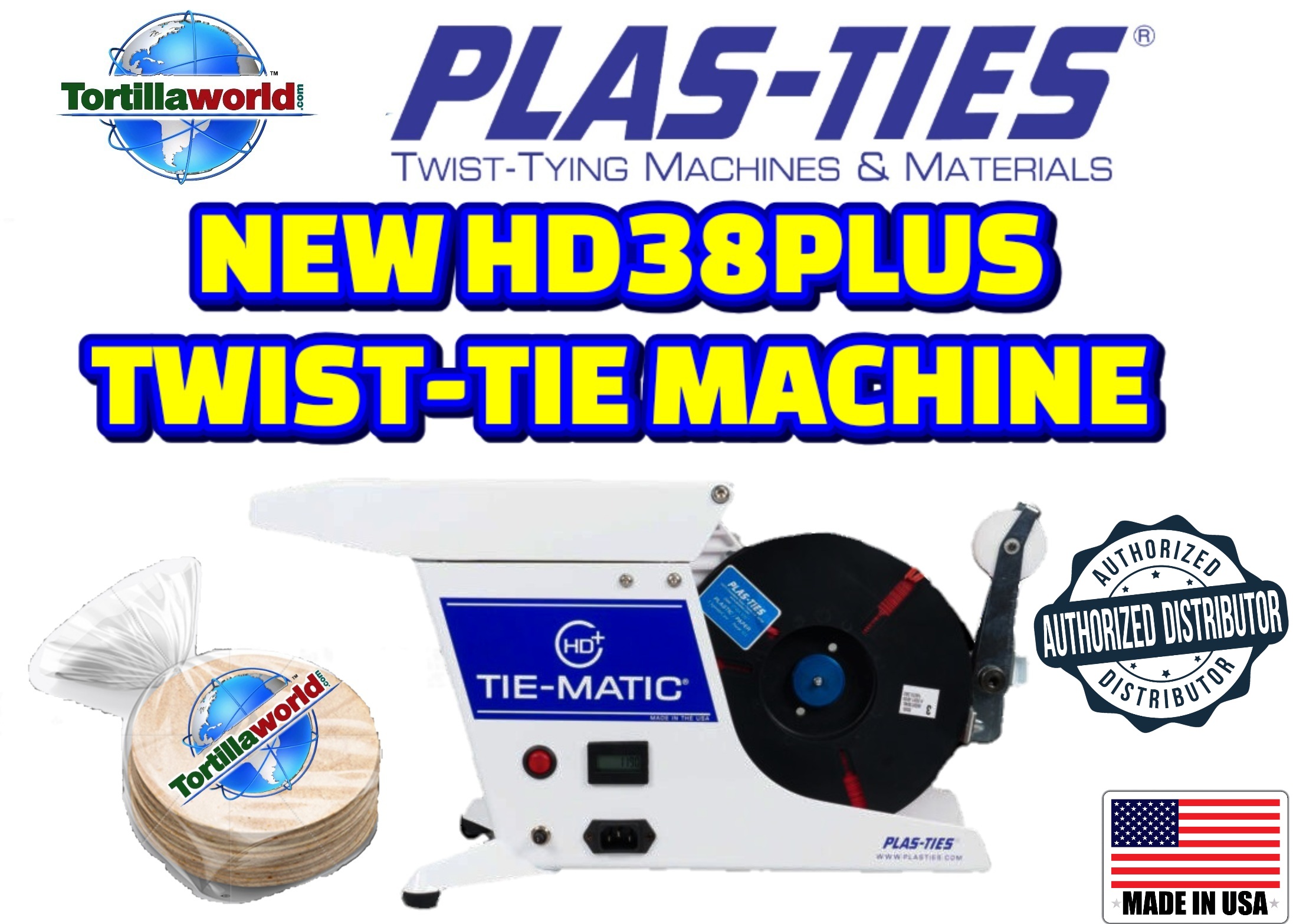 Tortillaworld is an authorized distributor of Plas-Ties who sells the complete line of HD-series Plas-ties twist-tying machines, materials & accessories. The HD38PLUS Tie-Matic has been proven to work in the tortilla Industry for over 35 years. Close your bag & label your product in just 1 second. The all new digital printer software allows you to to program the printed message instead of manually changing out the printed letters. HD38PLUS twist-tie machine, Fast, durable & reliable
