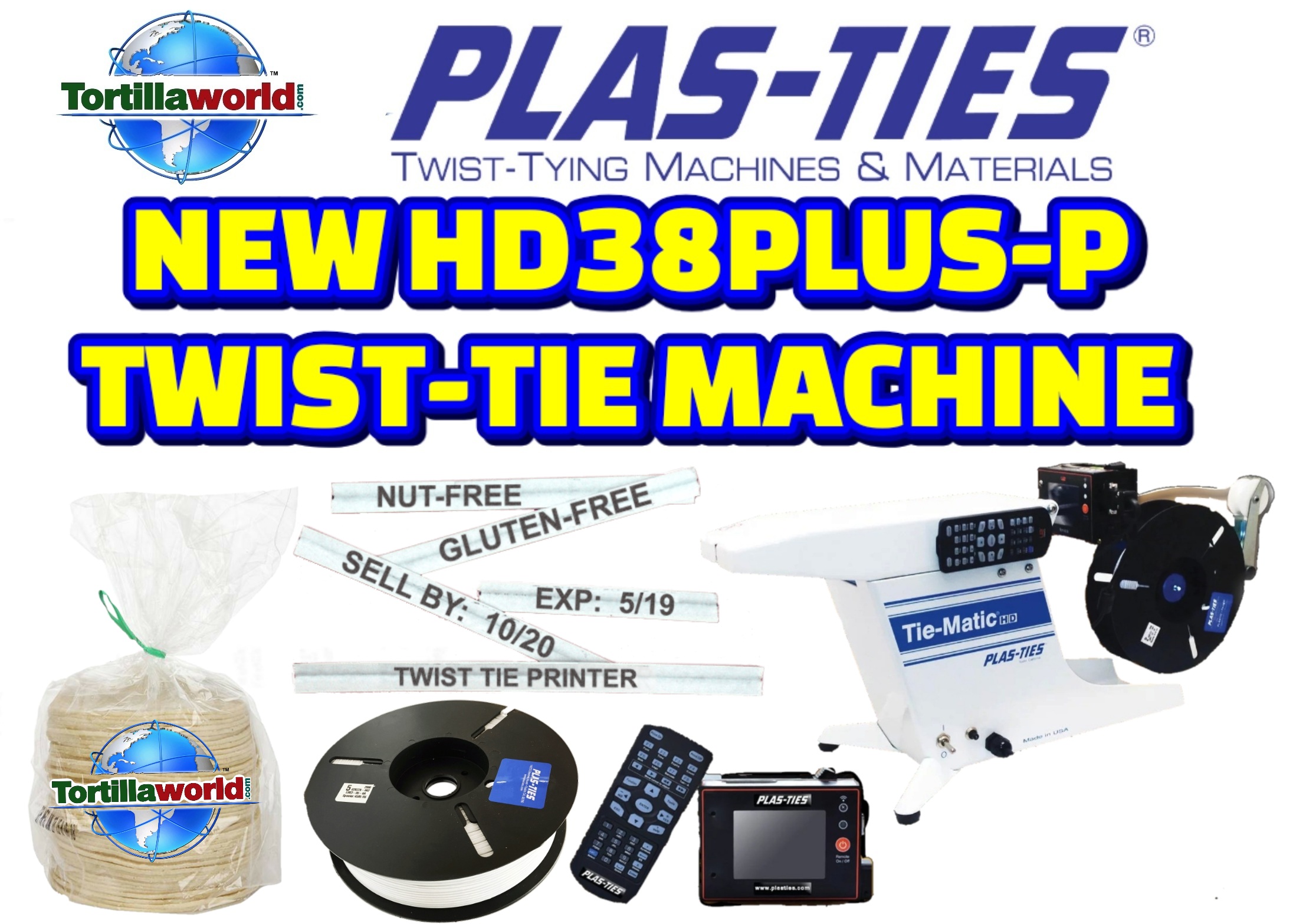 Tortillaworld is an authorized distributor of Plas-Ties who sells the complete line of HD-series Plas-ties twist-tying machines, materials, accessories & parts. The HD38PLUS-P Tie-Matic has been proven to work in the tortilla Industry for over 30 years. Close your bag and label your product in just one second. The new digital printer software allows you to to program the printed message instead of manually changing out the printed letters. The Tie-Matic HD38PLUS-P twist-tie machine. Its fast, durable & reliable