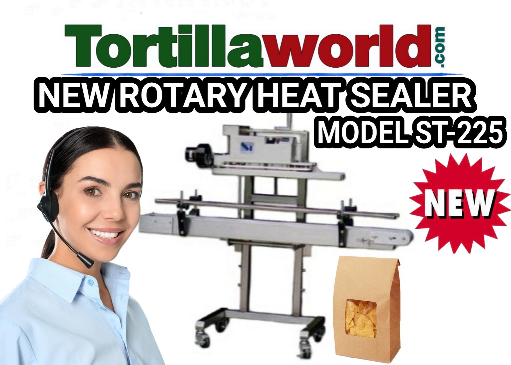 Follow us on all of our social media channels to receive our Tortillaworld exclusive at random flash sales on new & used tortilla & packaging equipment, replacement parts, Ingredients, lubricants and more