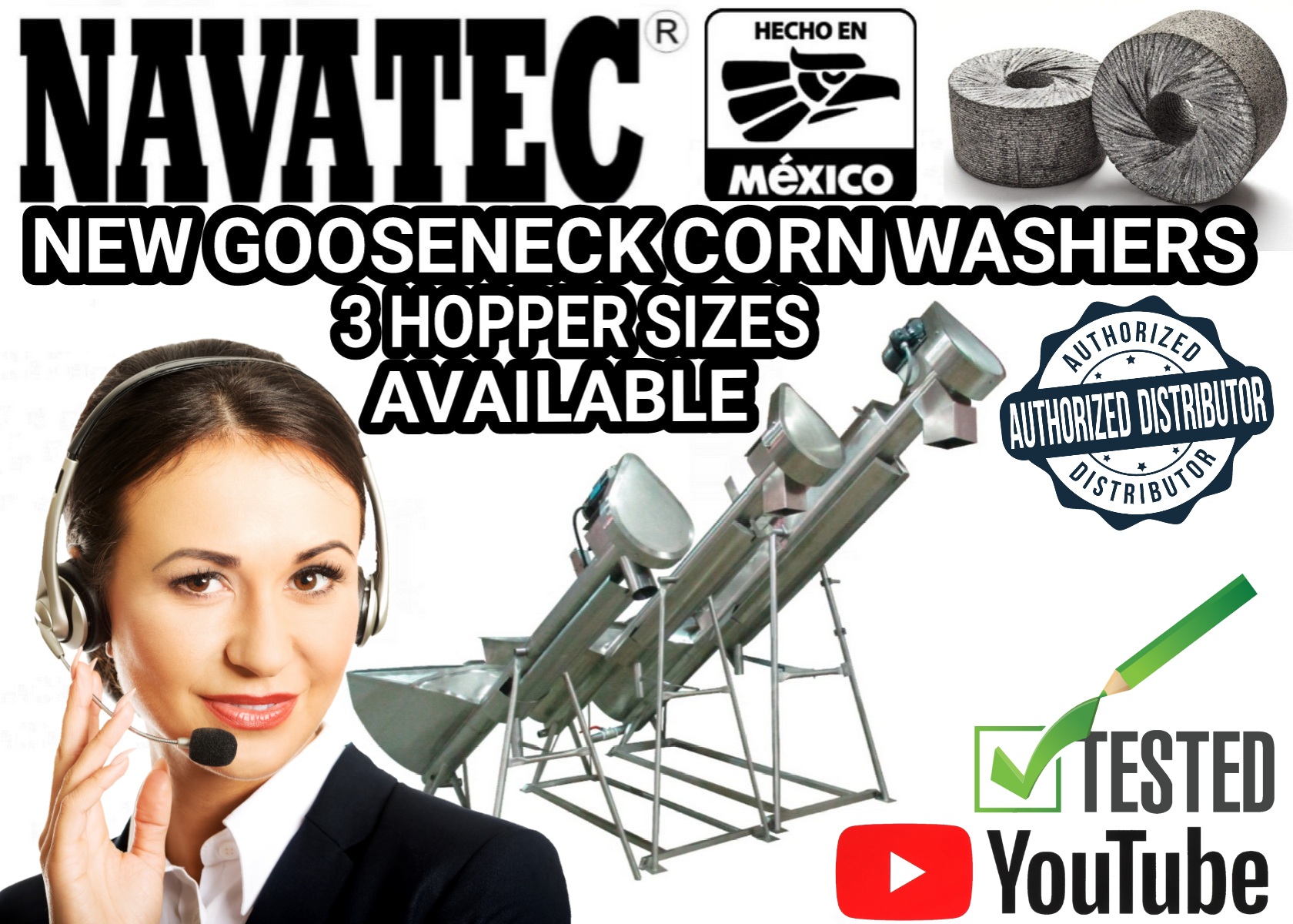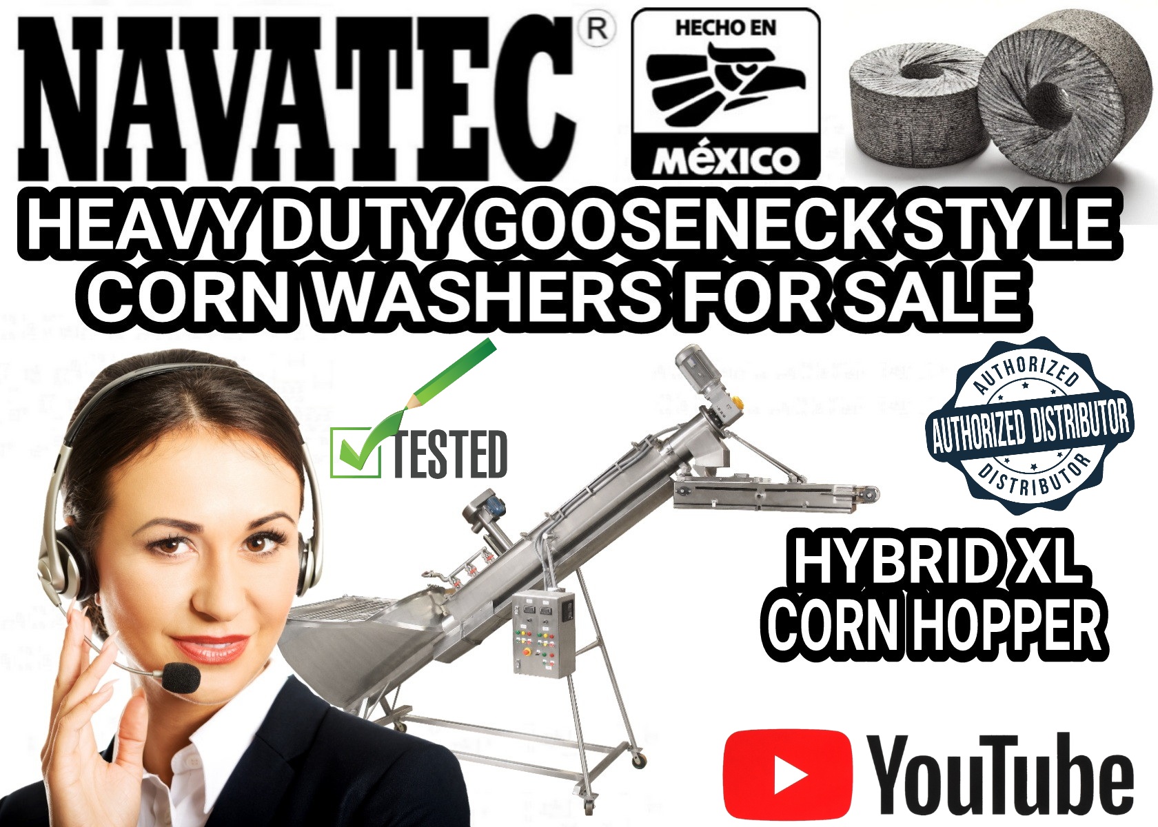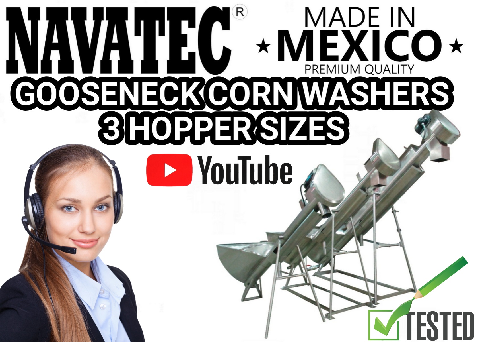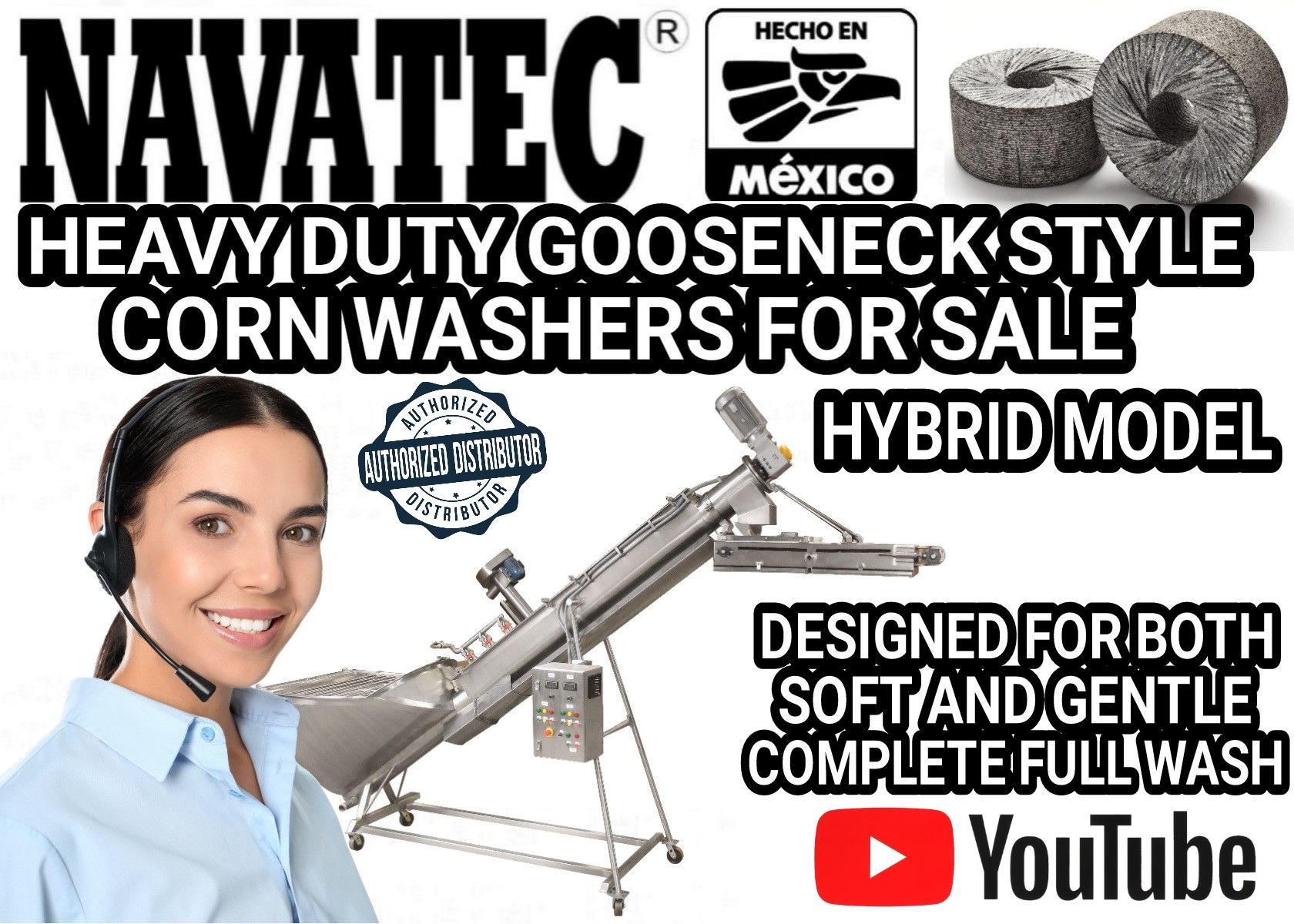 Navatec heavy duty gooseneck ( low boy) corn washers are designed for soft, hard wash or both (HYBRID) available in 3 corn hopper size capacity’s made with  304 stainless steel and Allen Bradley electrical components