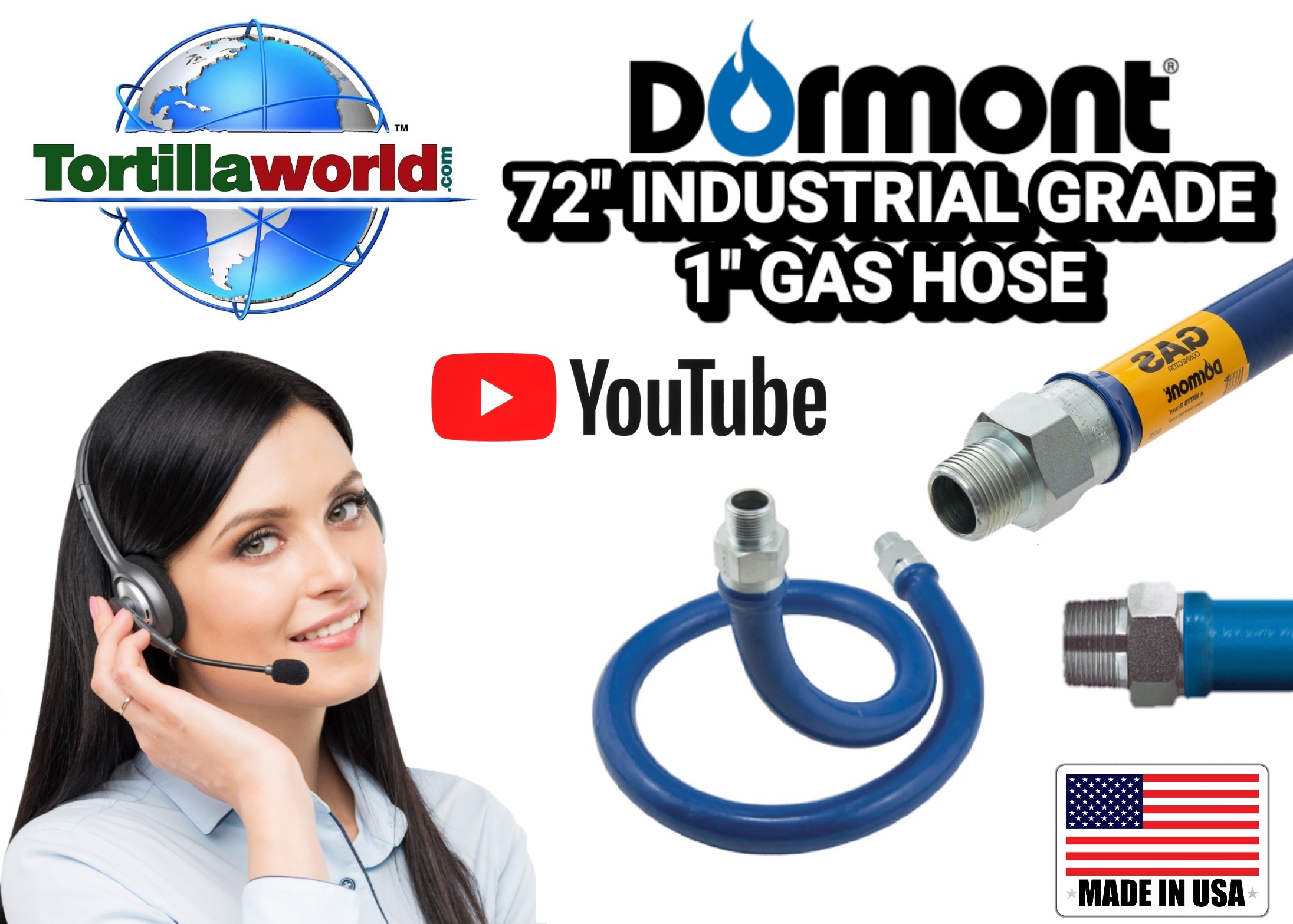 This is a commercial grade movable gas hose connector available from 24″ up to 72″ in length, composed of 301 stainless steel corrugated tube covered with a tight weave of stainless-steel braid specifically engineered for caster mounted commercial cooking & tortilla Industry equipment like traditional corn cooking tubs, tortilla chips, tostadas and churrito basket fryers etc.
