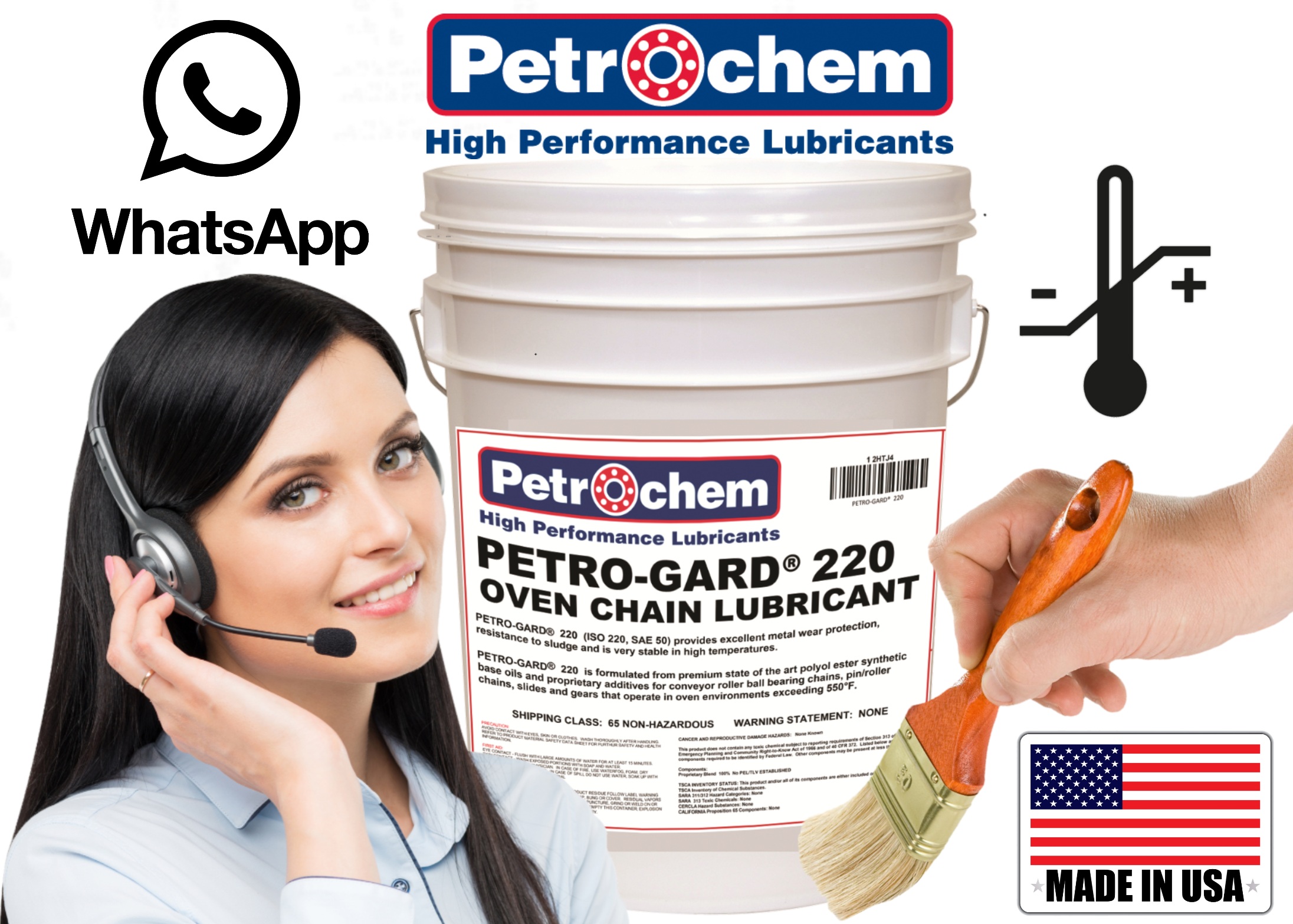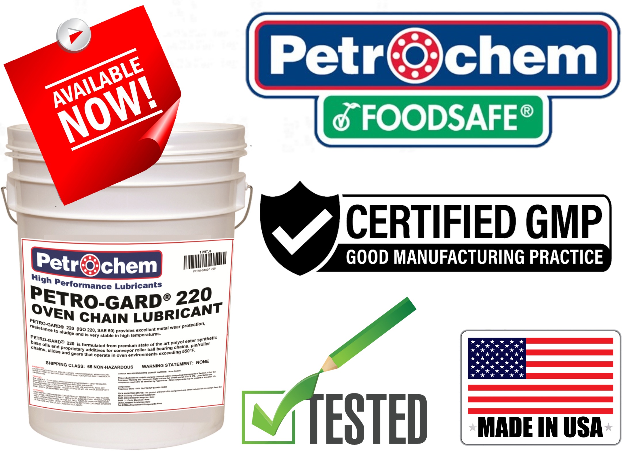 High temperature synthetic food grade oven chain lubricant by Petrochem, PETRO-GARD 220 oven chain lubricant is a food grade, high temperature based synthetic chain oil fortified with anti-wear additives and oxidant inhibitors that optimize the performance and stability of the lubricant. The natural detergency of PETRO-GARD food grade 220 H1 minimizes carbon buildup on chains contributed by conventional food grade PAO’s, mineral, and vegetable-based lubricants when exposed to higher temperature oven environments. It has a high flash point and a recommended operating temperature range of -25º C to 315º C (-13º F-599º F) NSF registered H1 food grade meets all regulations set by the FDA (21CFR 178.3750) approved for incidental contact with food in and around food processing areas