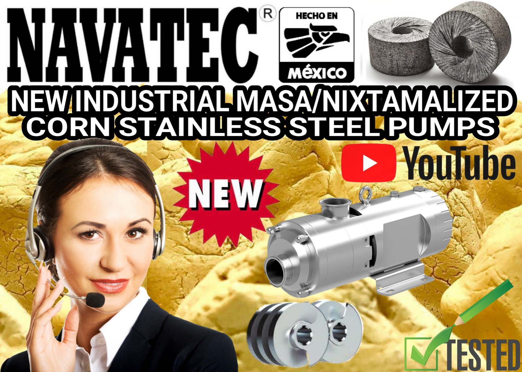 New sanitary stainless-steel masa or corn pump that runs forward and in reverse as needed for your production needs. Pump available in different sizes and is sent with a  stainless steel base made specifically for the size pump ordered