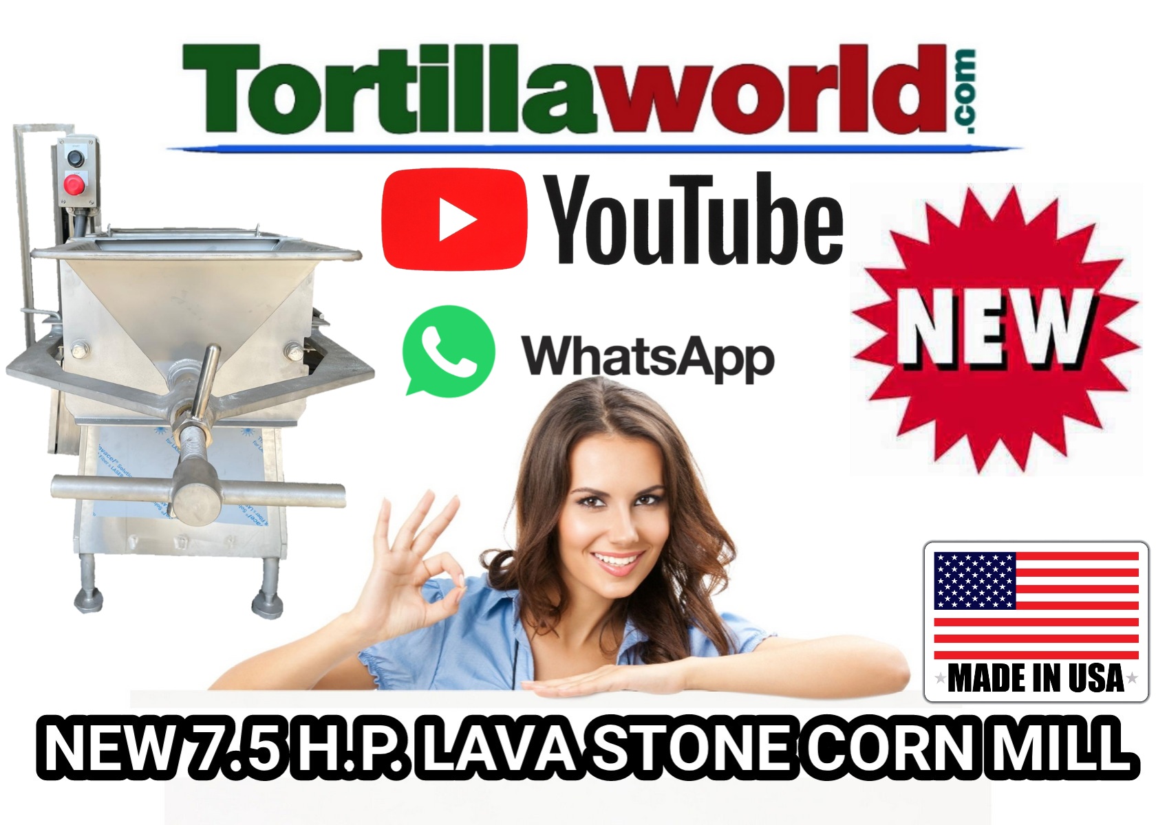 Para mas informacion, precios y ventas en México, contacte a nuestro representate commercial de Tortillaworld en México, El Sr. Herminio (mini) Garza García de San Nicolás de Los Garzas, Nuevo León al 811-034-4581, En EE.UU. 331-201-1924 o lláme sin costo a nuestro 1-800-335-Tortilla (8678) ext. 4