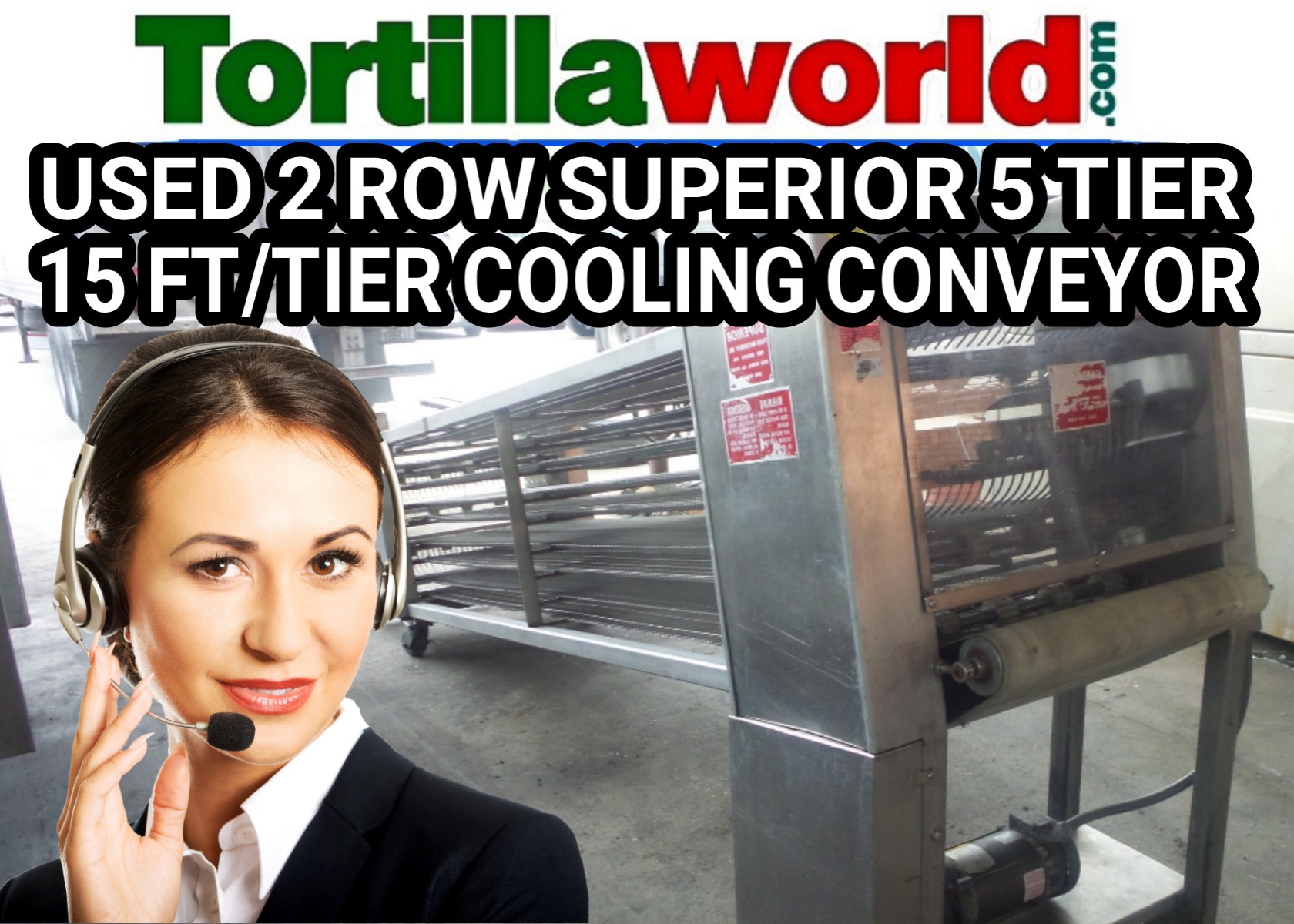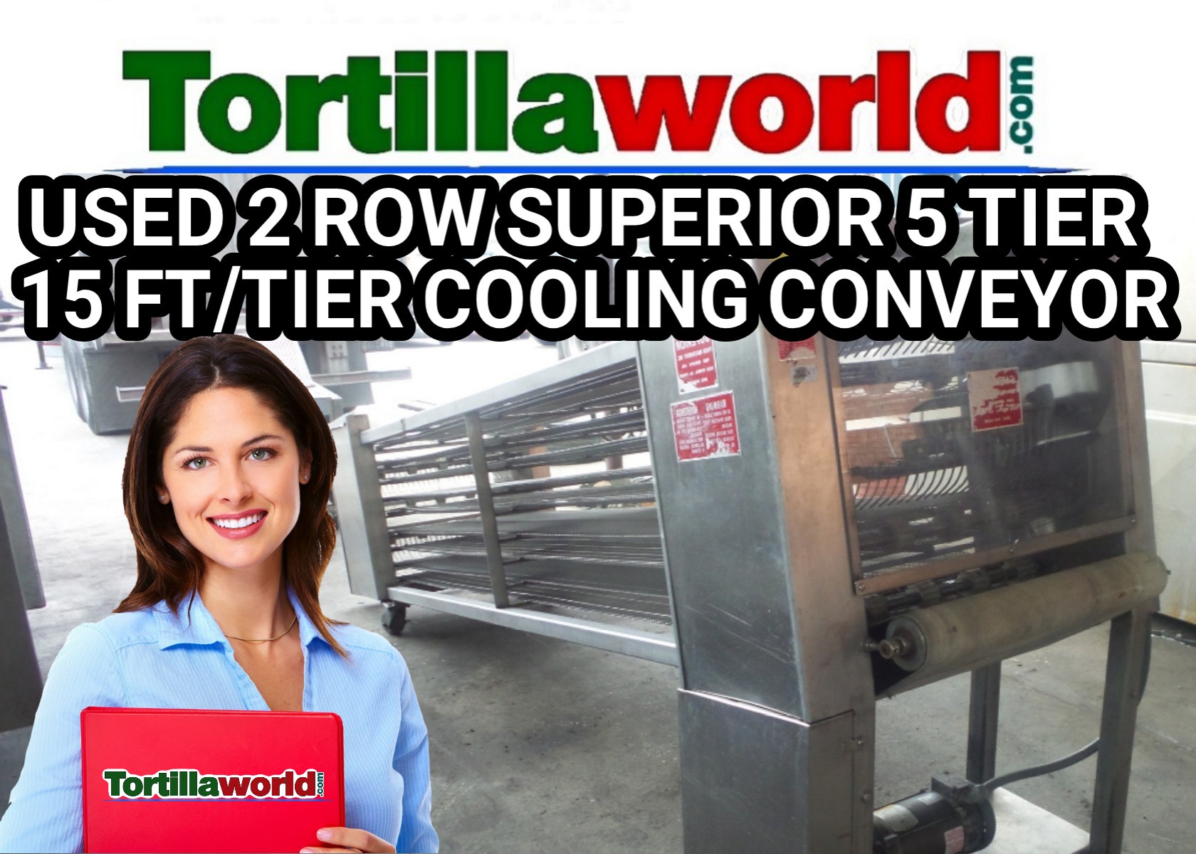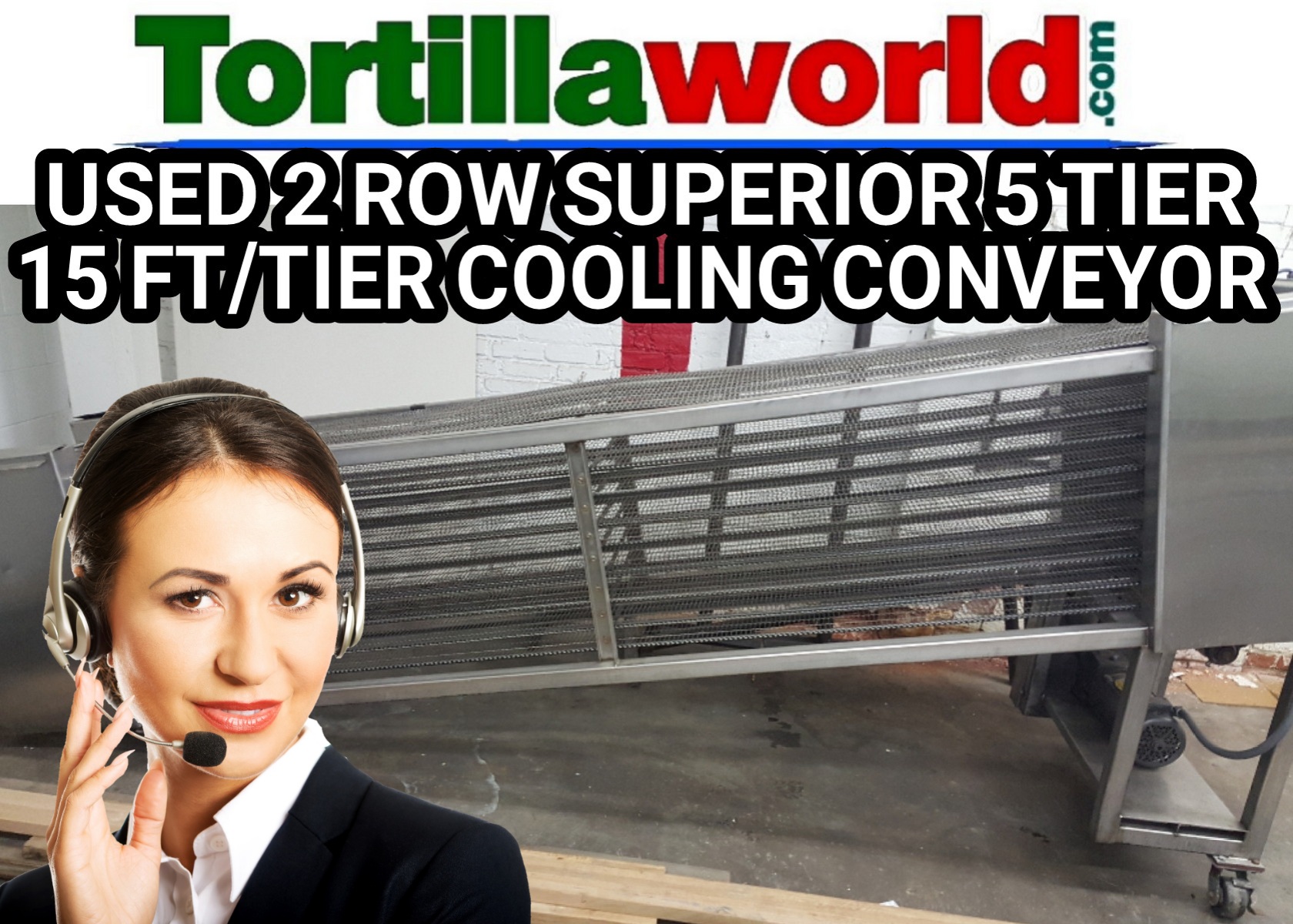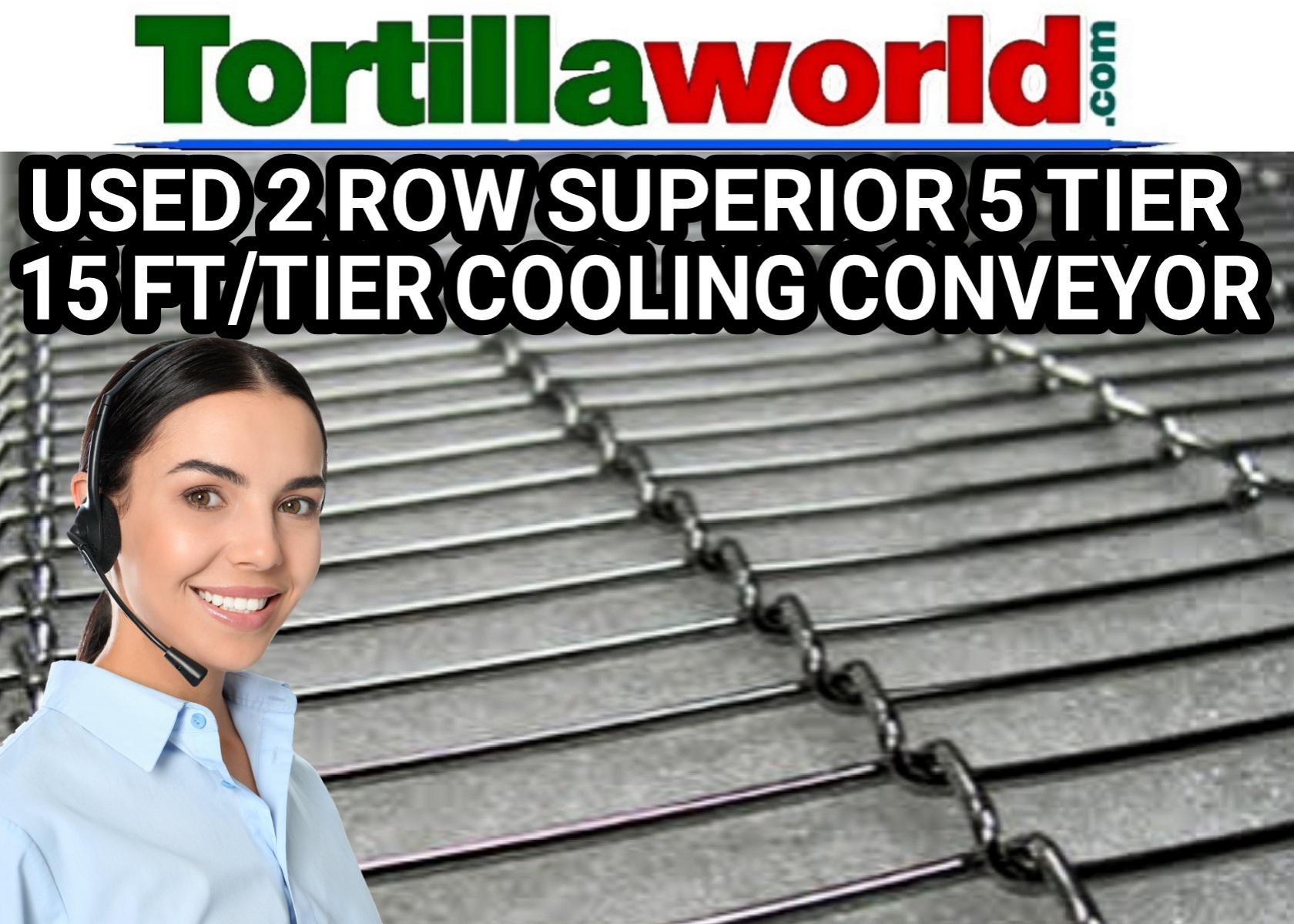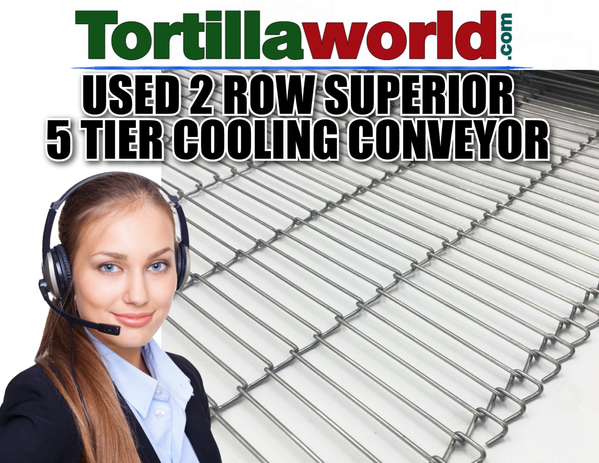 Used 2 row Superior 5 tier cooling conveyor for sale. 24″ width belting