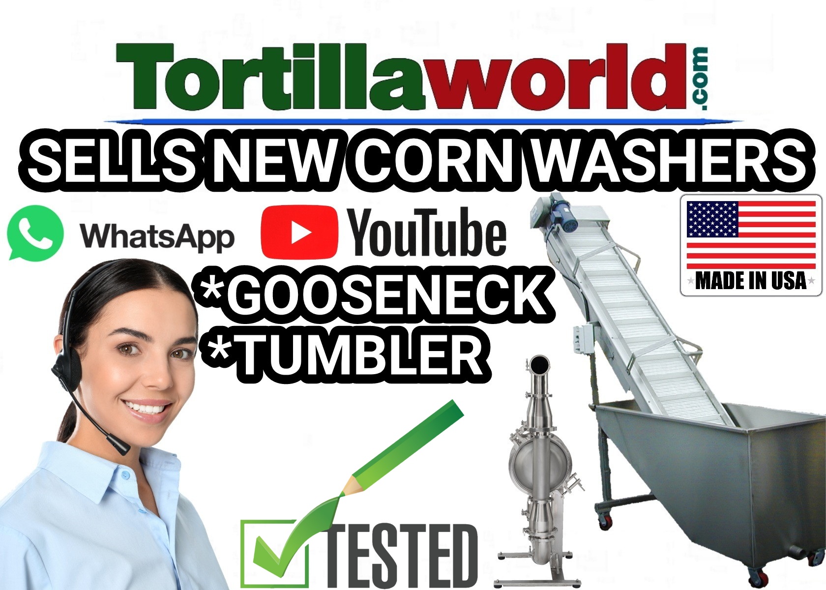 Para mas informacion, precios y ventas en México, contacte a nuestro representate commercial de Tortillaworld en México, El Sr. Herminio (mini) Garza García de San Nicolás de Los Garzas, Nuevo León al 811-034-4581, En EE.UU. 331-201-1924 o lláme sin costo a nuestro 1-800-335-Tortilla (8678) ext. 4
