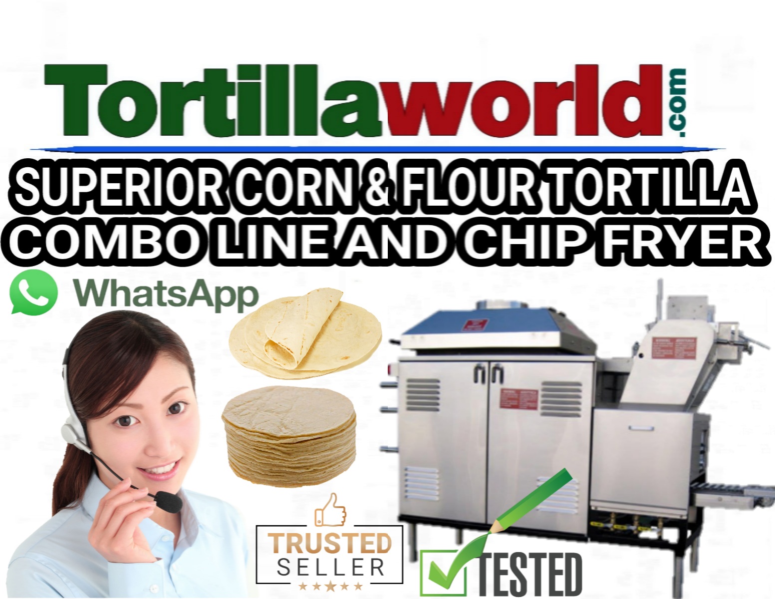Para mas informacion, precios y ventas en México, contacte a nuestro representate commercial de Tortillaworld en México, El Sr. Herminio (mini) Garza García de San Nicolás de Los Garzas, Nuevo León al 811-034-4581, En EE.UU. 331-201-1924 o lláme sin costo a nuestro 1-800-335-Tortilla (8678) ext. 4