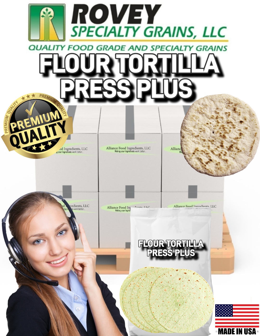 FT-PRESS-PLUS is a special formulated blend of rice flour and L-cysteine to reduce mixing time & increase press diameter in flour tortillas. It’s a great non-dairy alternative to whey based dough conditioners. Sold in 50 lb. sacks (22.7 K.) Kosher certified